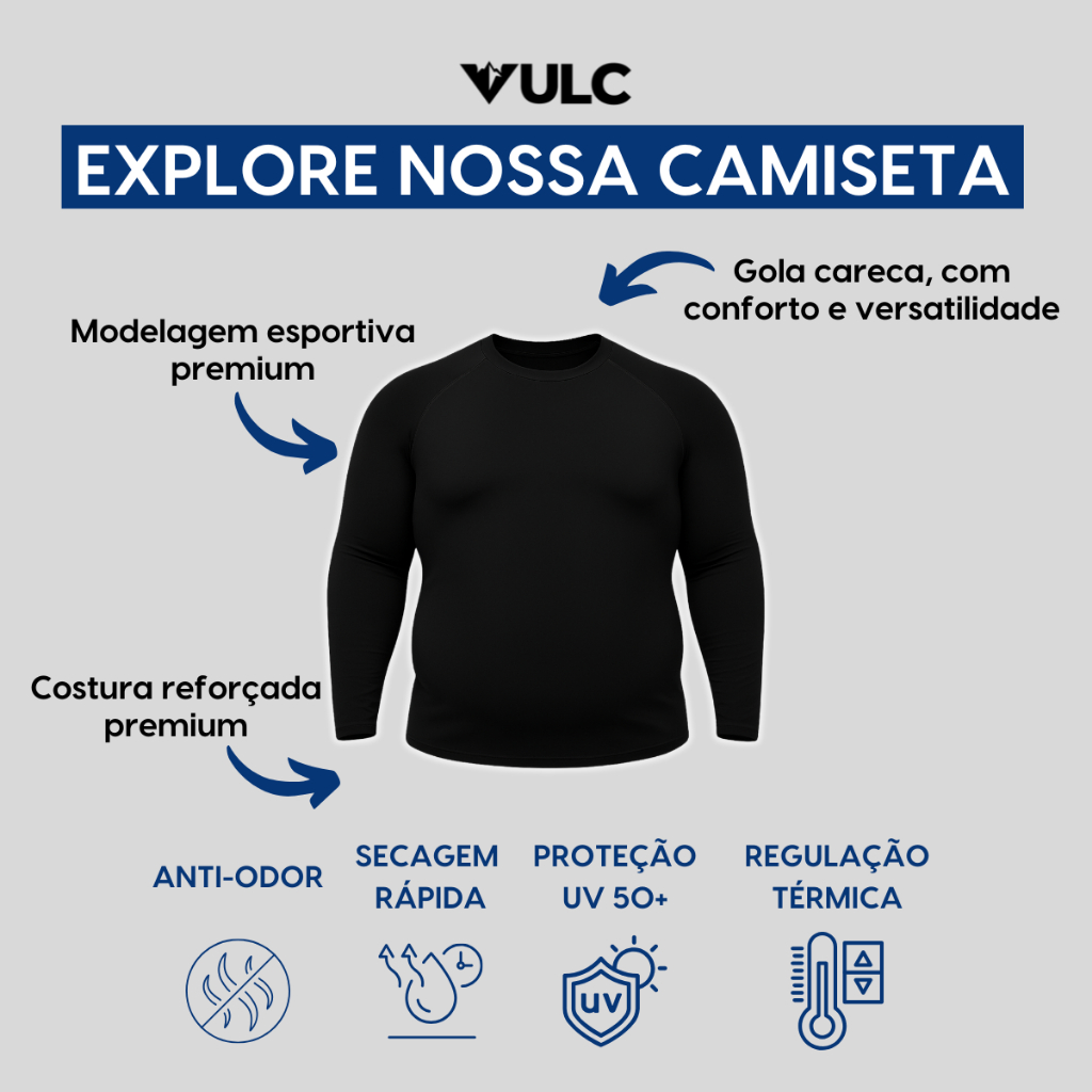Camisa Térmica Masculina Plus Size Blusa Proteção Uv Frio e Calor Manga Longa