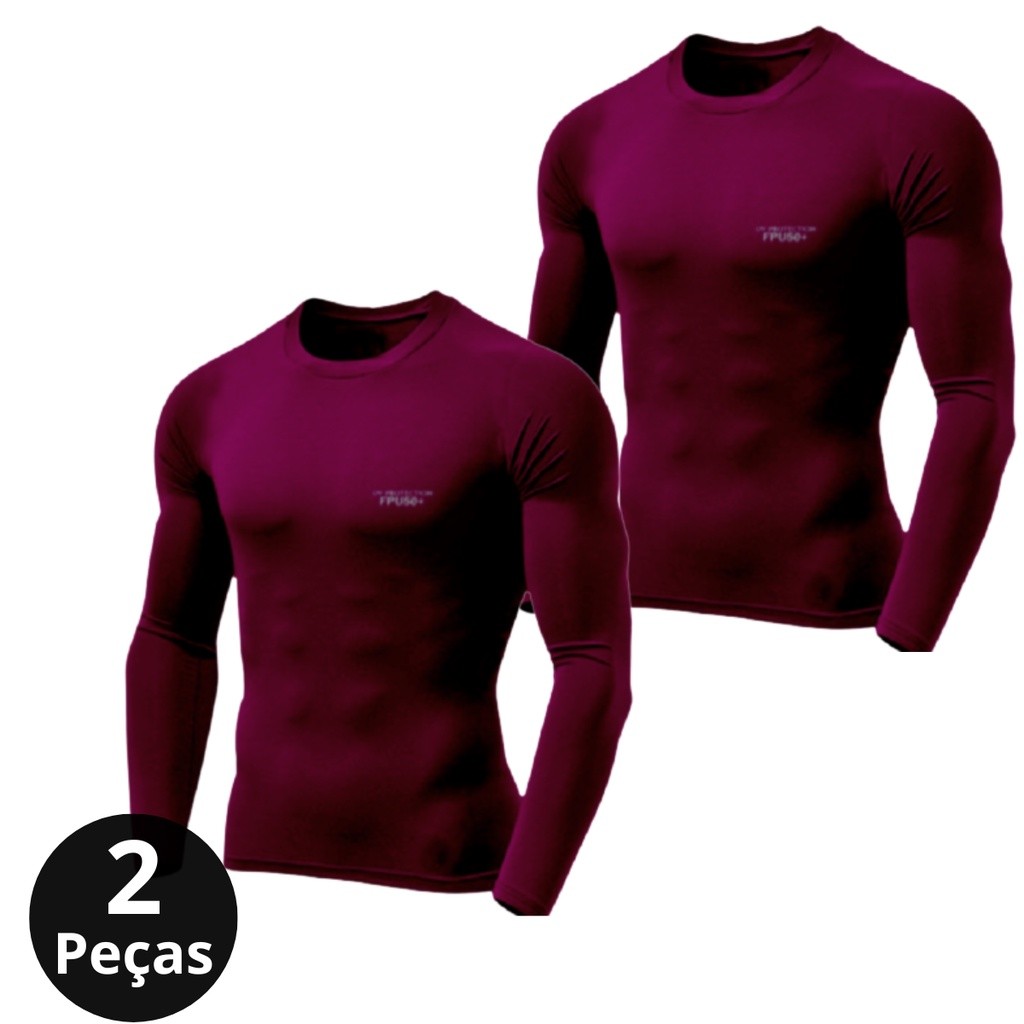 Kit 02 Camiseta Térmica Proteção UV Segunda Pele Compressão Manga Longa Frio Calor