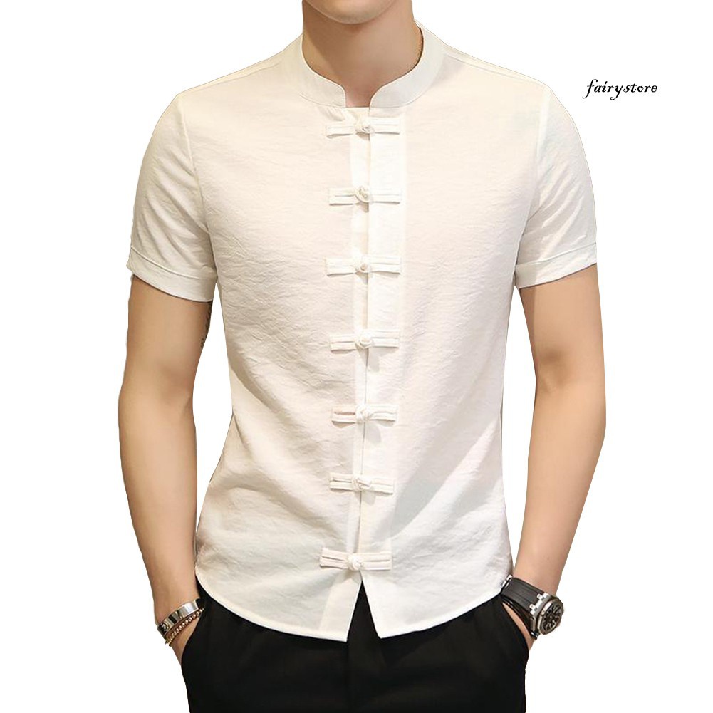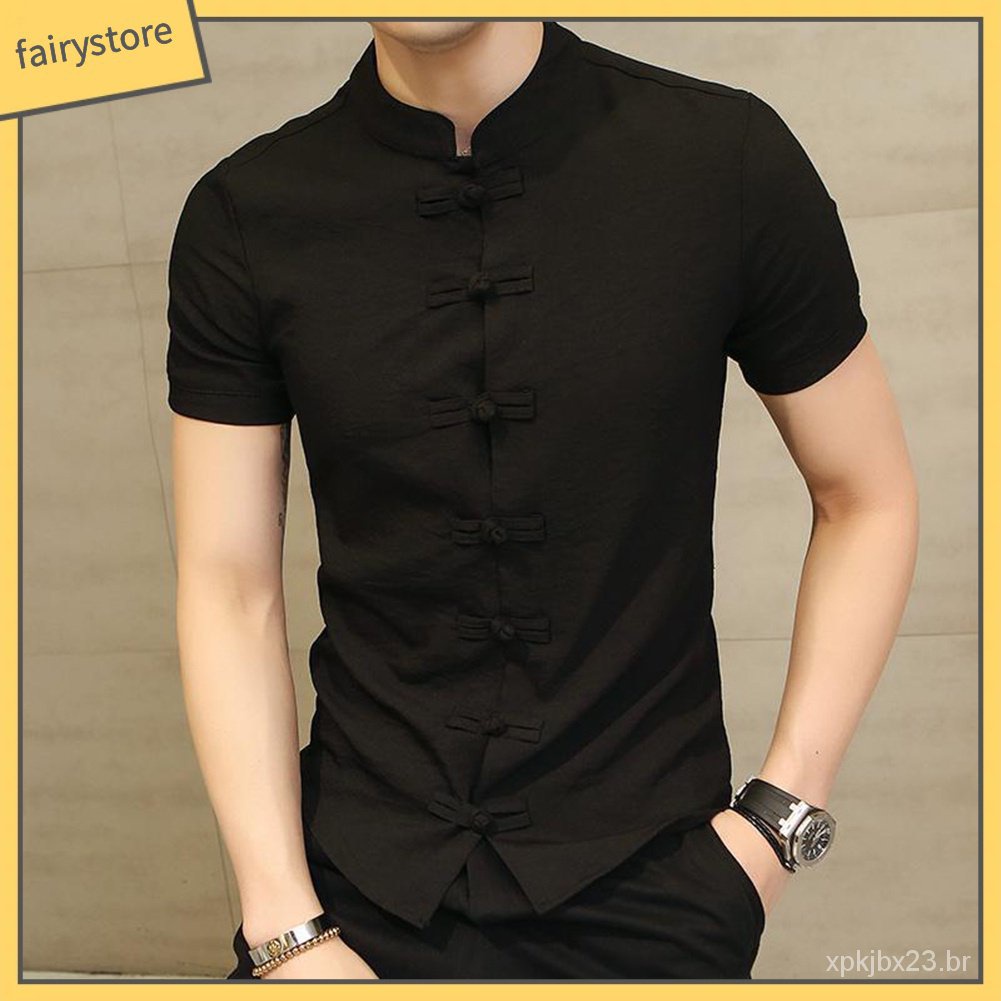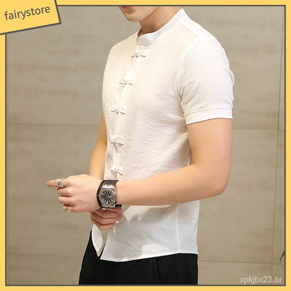 Fairystore | | Tradicional Chinês Tang Terno dos homens Plus Size Manga Curta Uniforme Kung Fu UBUZ