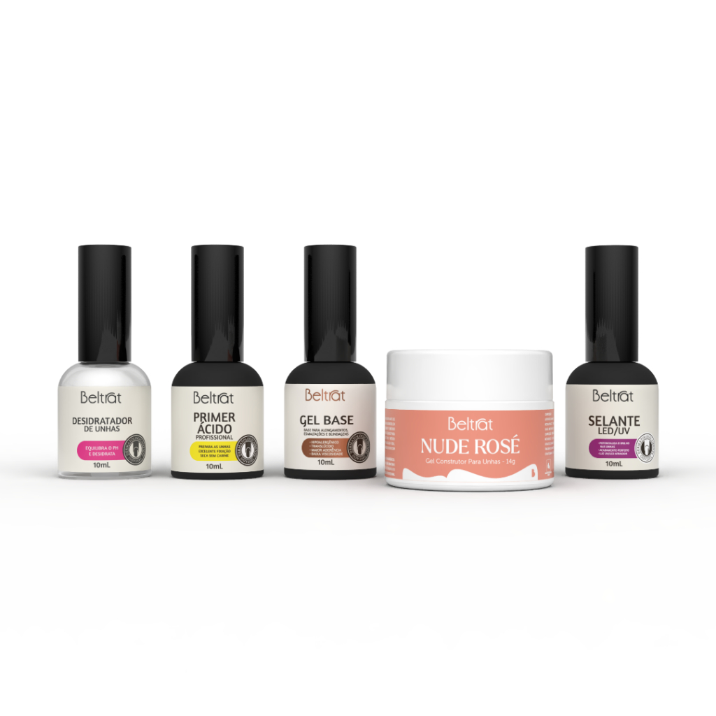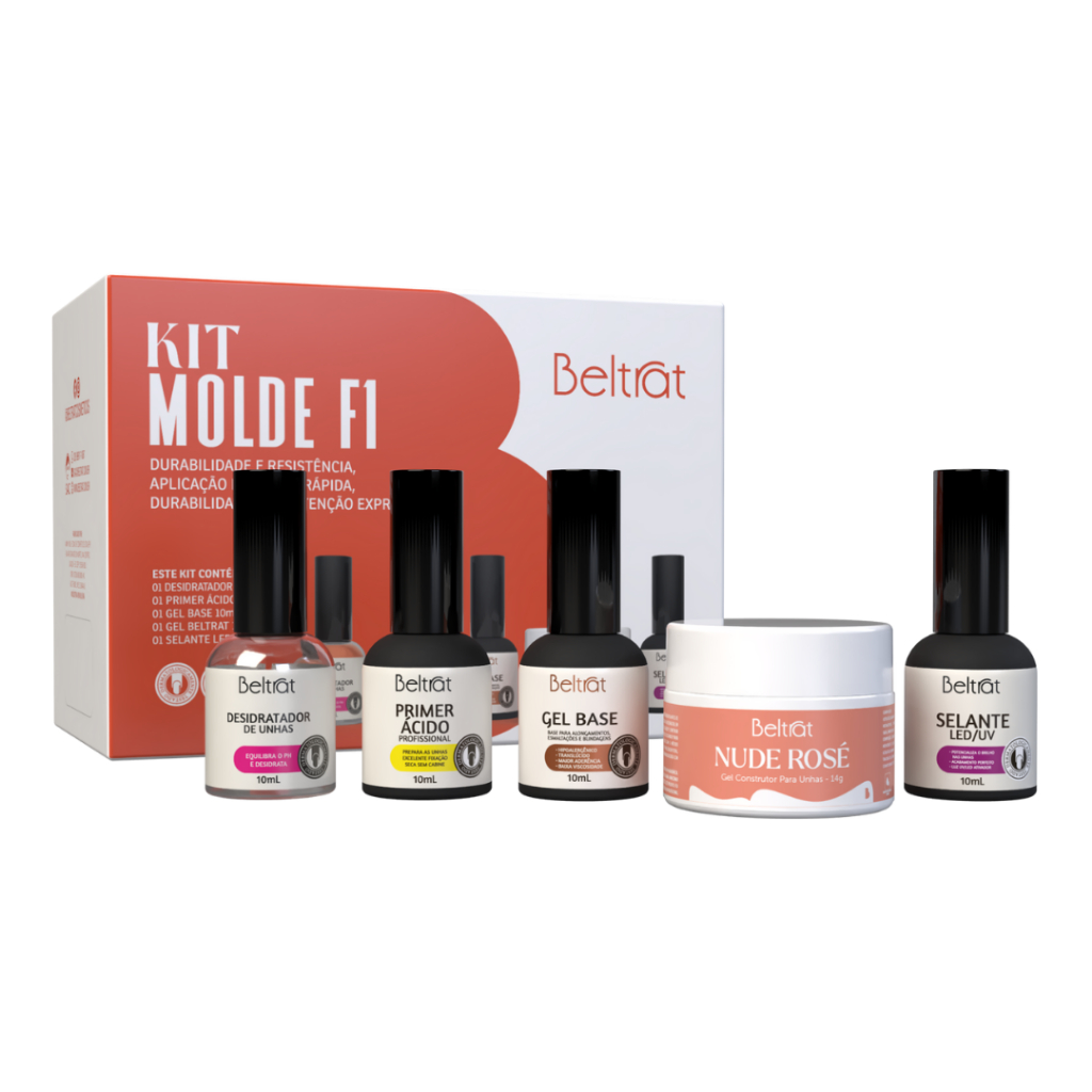 Kit Molde F1 Beltrat Preparadores e Finalizador Gel Nude Rose Mousse 14g Alongamento Unhas Gel