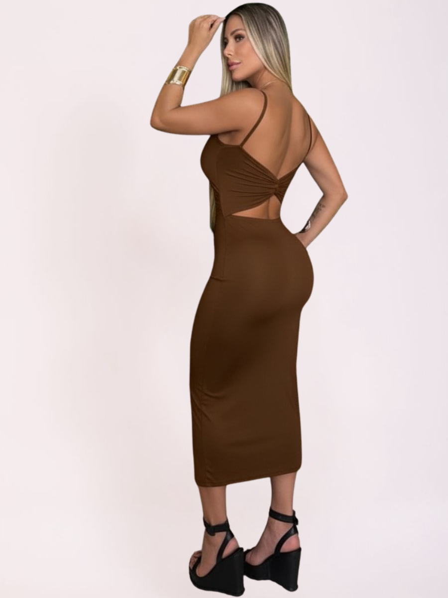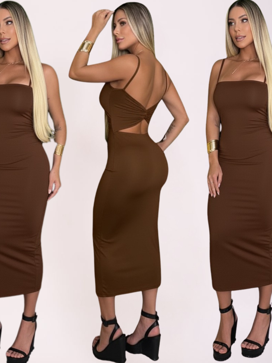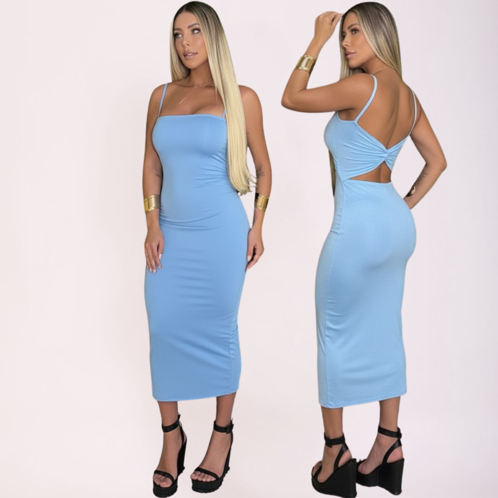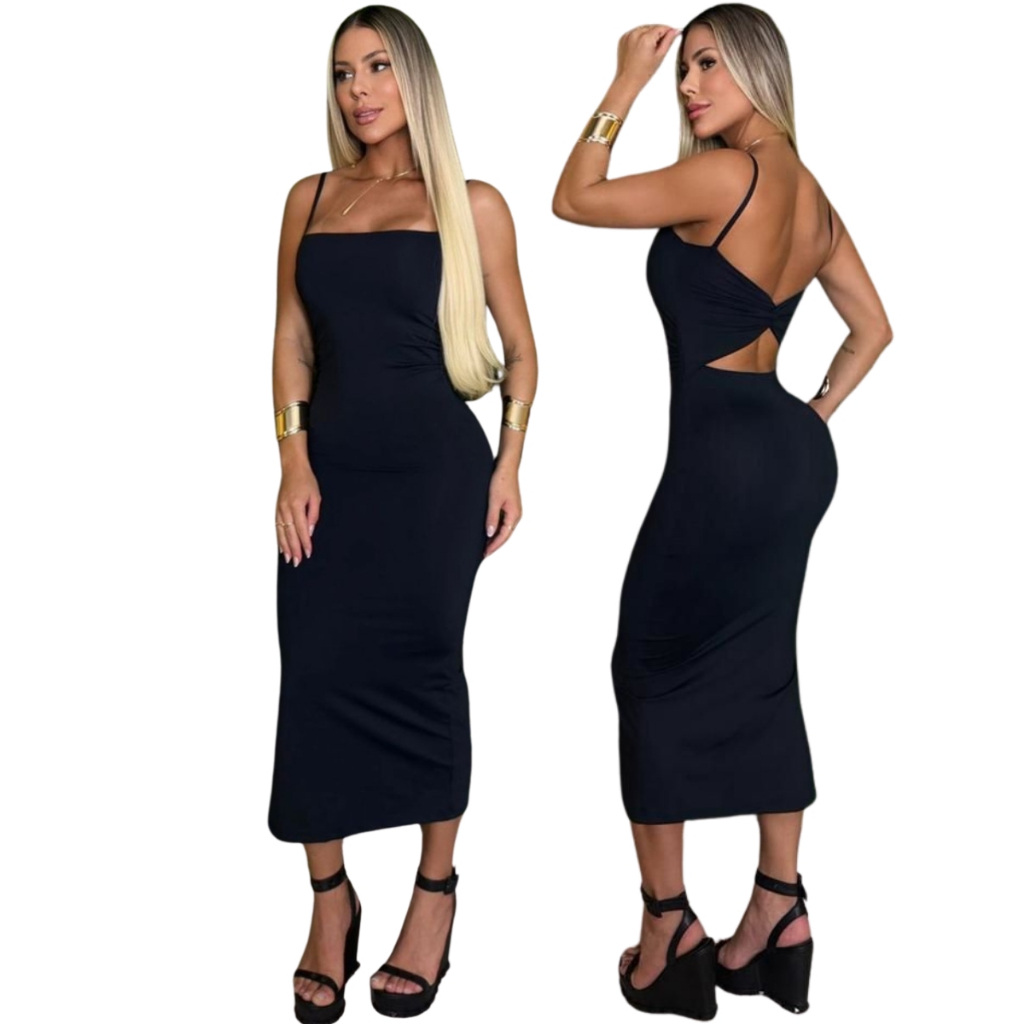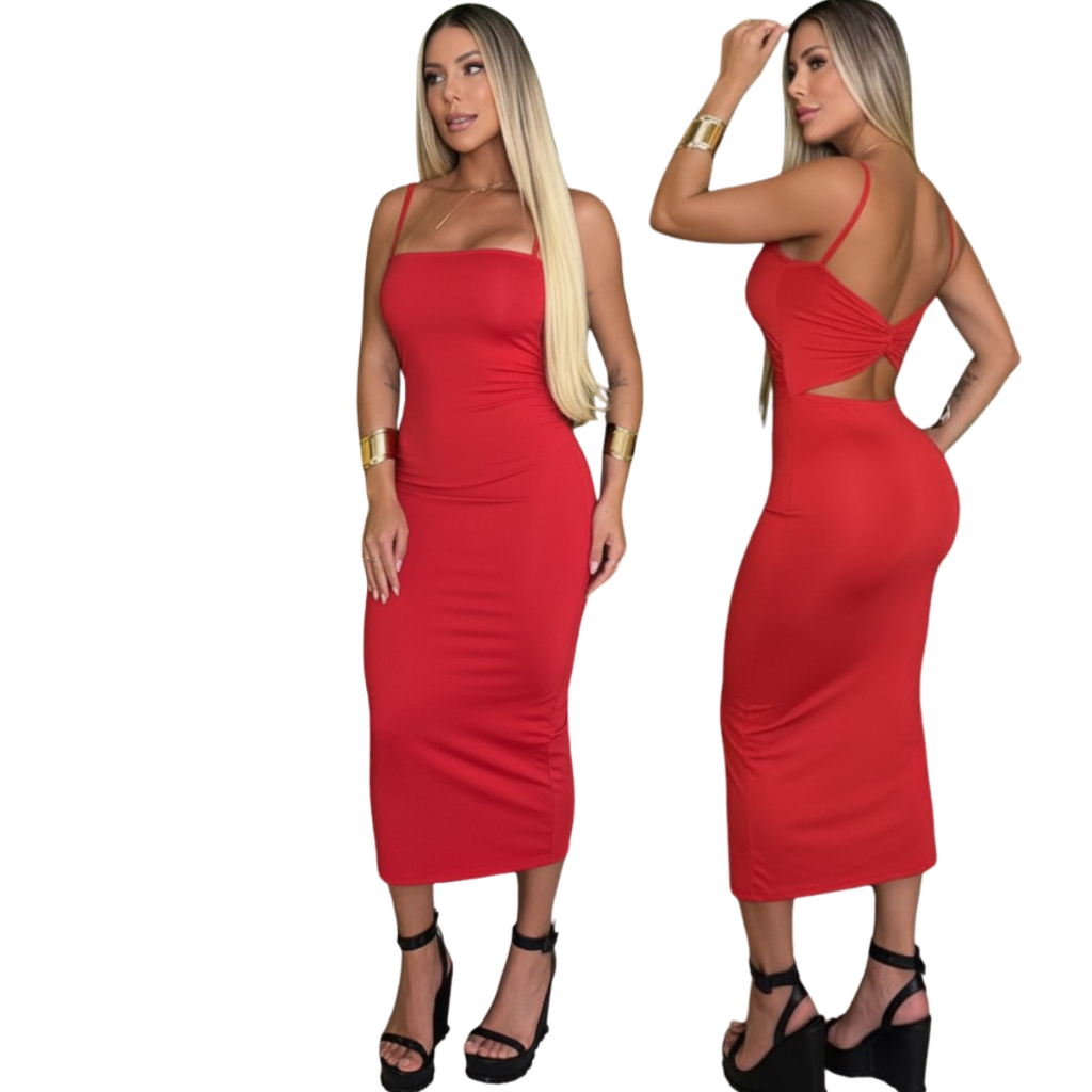 Vestido Midi Alcinha Decote Reto Vestido Feminino Colado com bojo na Poliamida Premium 2 Em 1