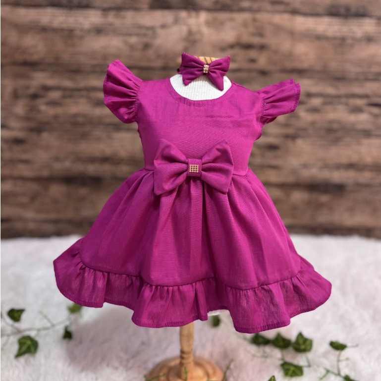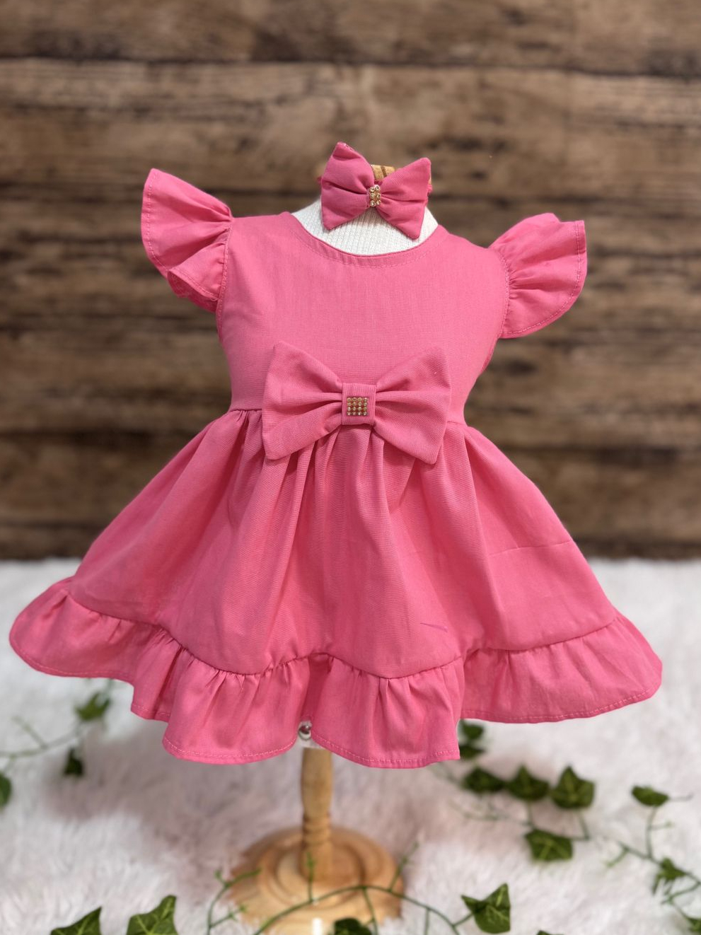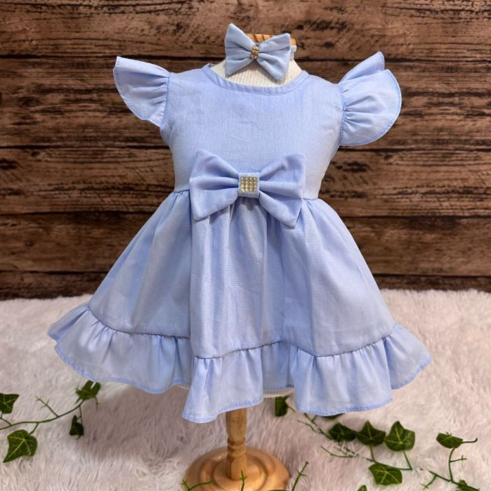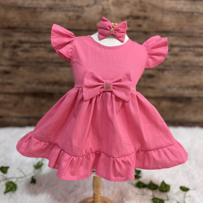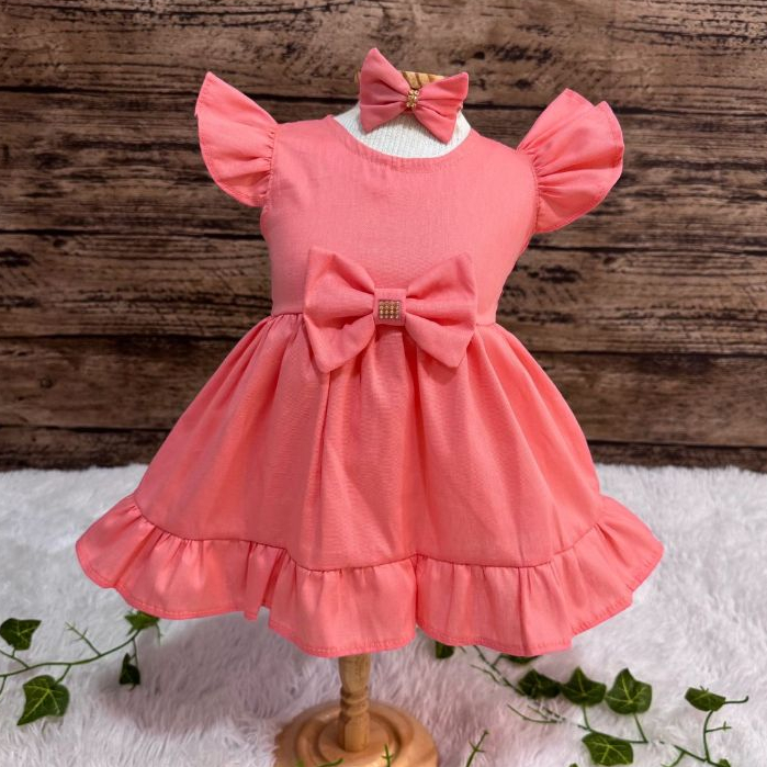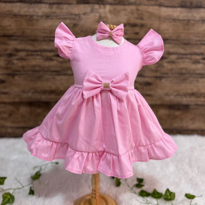 Vestido Infantil Liso Tricoline 100% Algodão Conforto Elegância Roupa de Bebê 0 a 7 meses