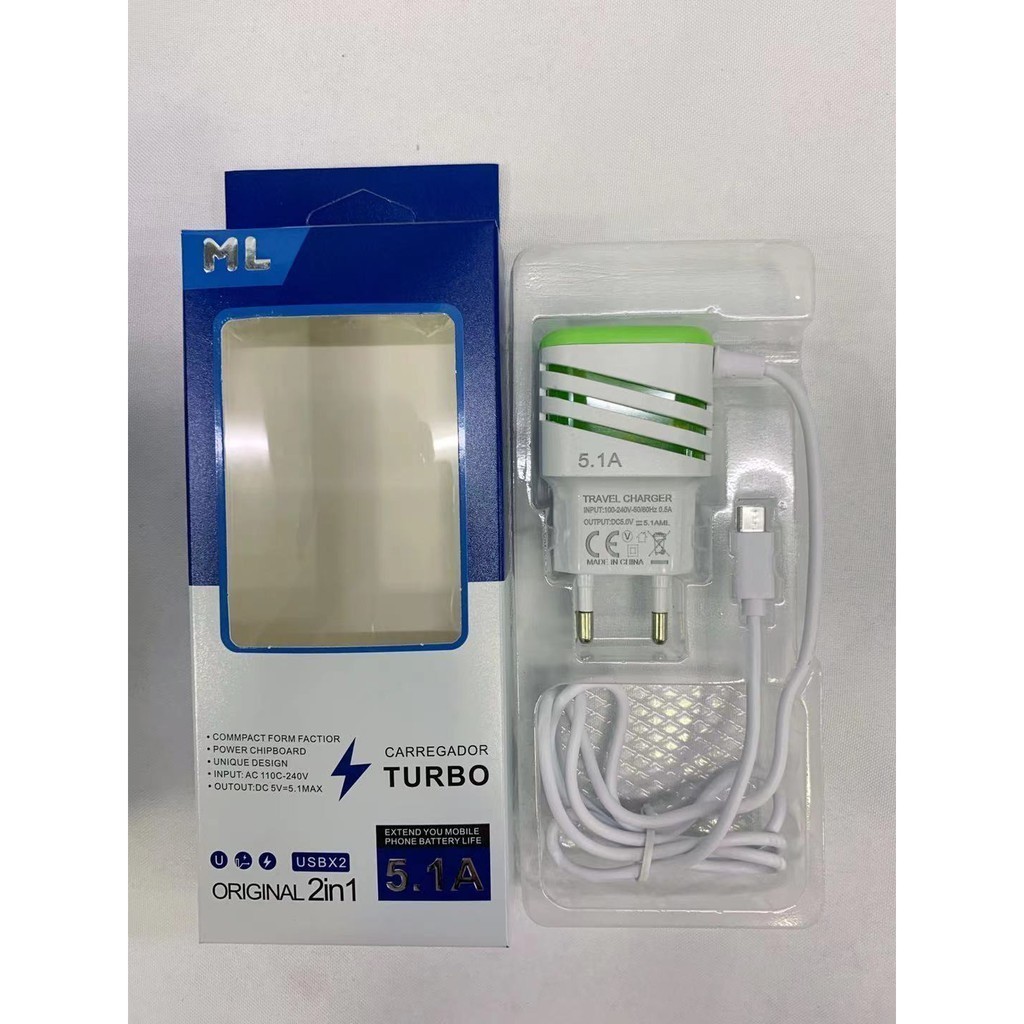 KIT COM 10 PECA CARREGADOR CELULAR 5.1A V8 MICRO USBll