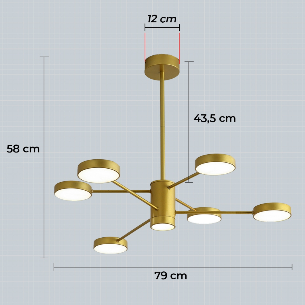 Lustre Led Pendente Nórdico Galáxia 6 Hastes Moderno Luminária Teto Sala 70w Bivolt Dourado Brinovar