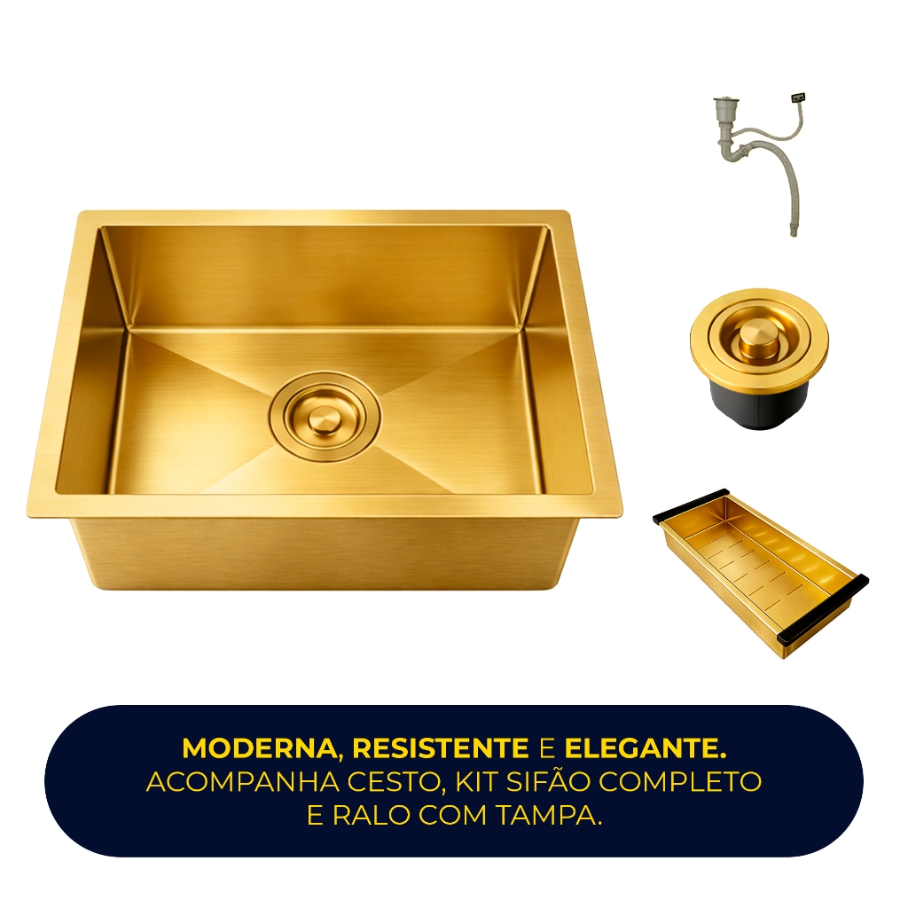 Cuba De Cozinha Gourmet Completa Aço Inox 304 44x44cm Embutir e Sobrepor Brinovar