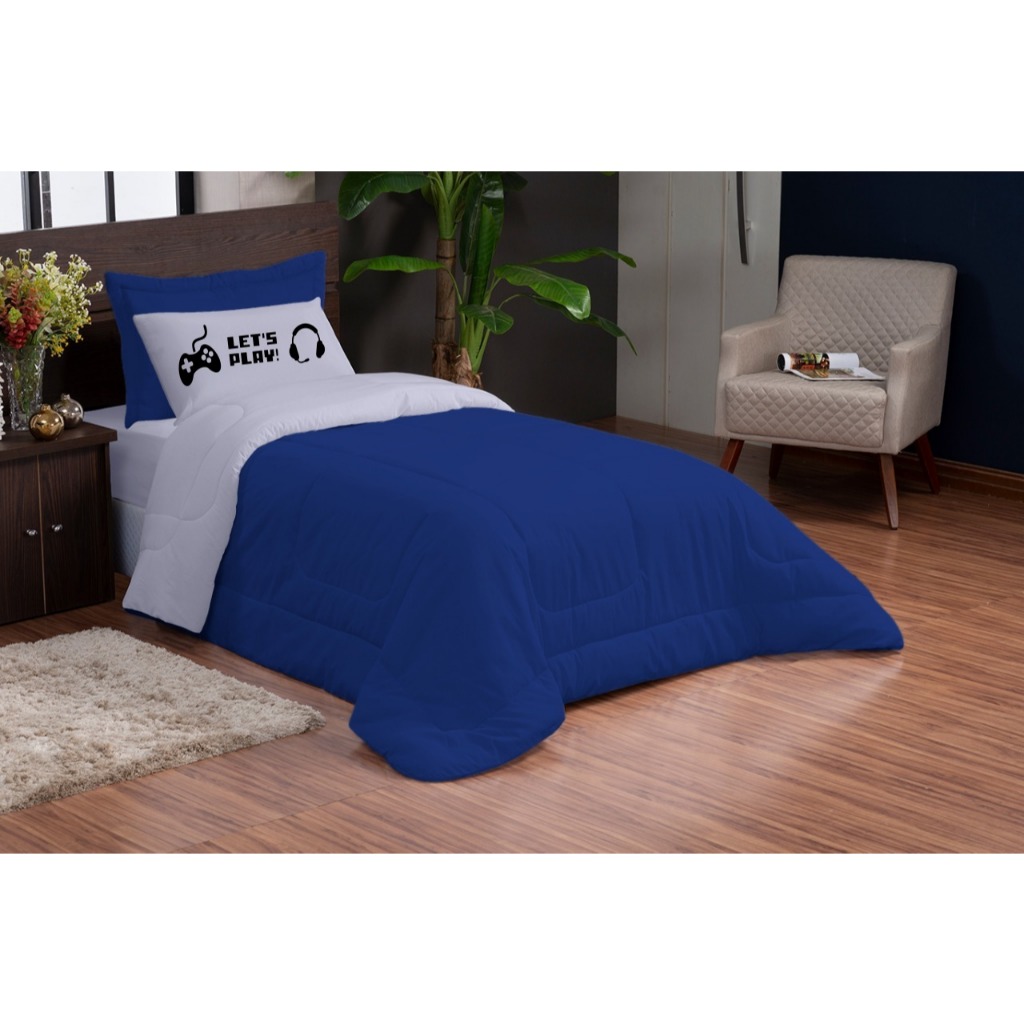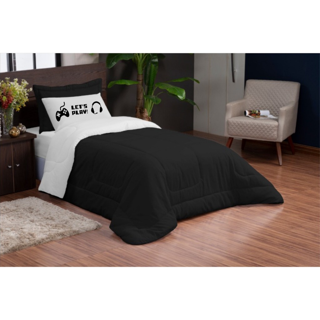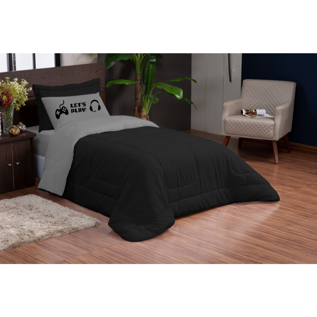 Kit 3 Peças Edredom Solteiro Microfibra Com Fronha Estampada e Porta-Travesseiro