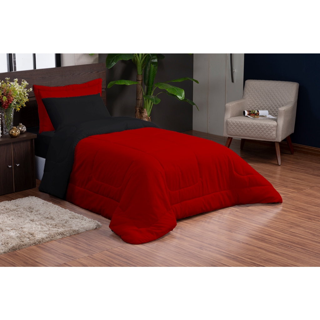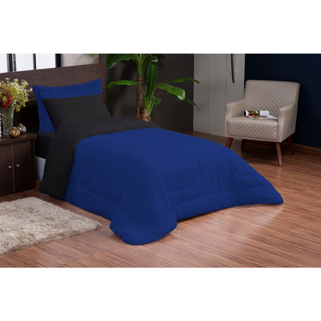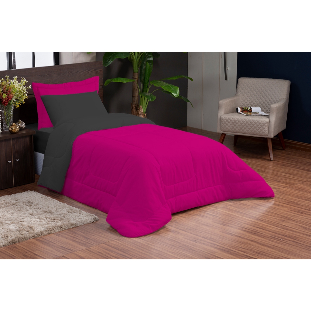 Kit 3 Peças Edredom Solteiro Microfibra Com Fronha Estampada e Porta-Travesseiro