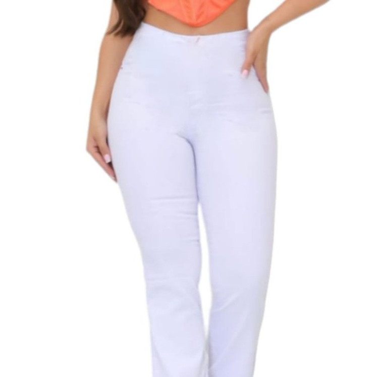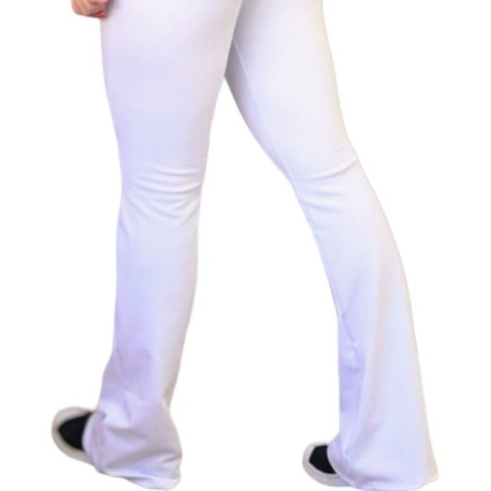 Calça Legging Flare Branca Bailarina Lisa Suplex Academia Enfermagem Esteticista Cós Alto