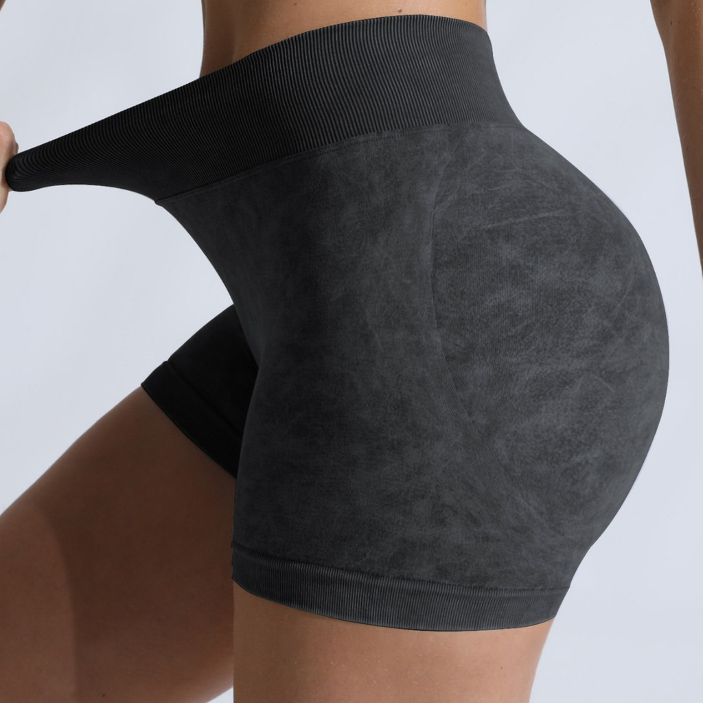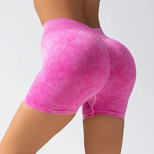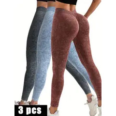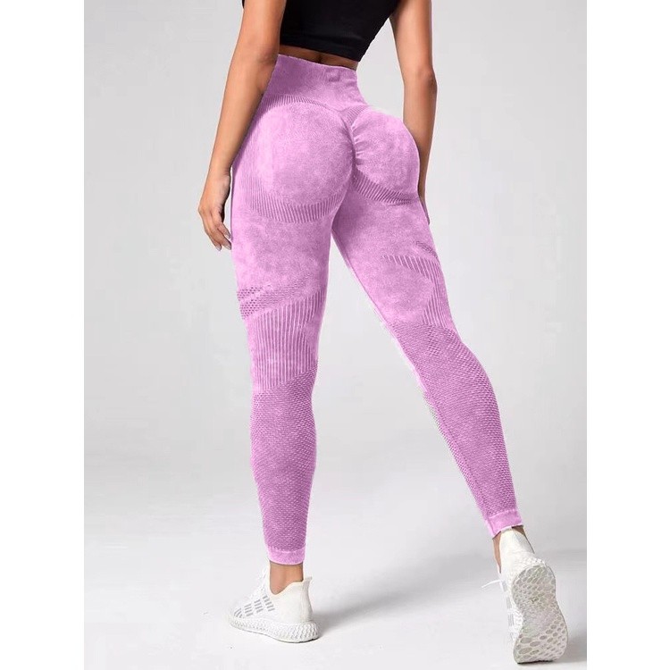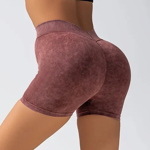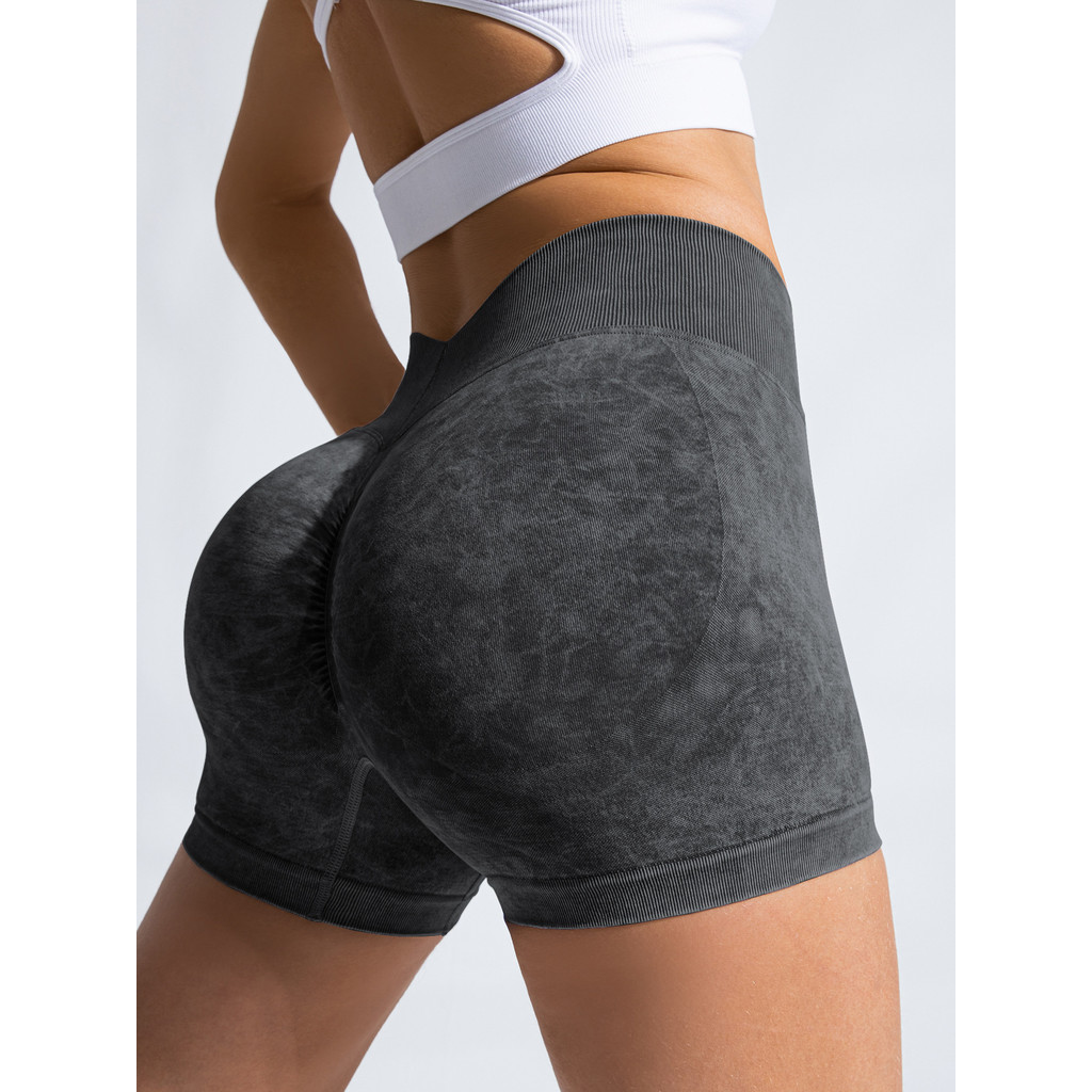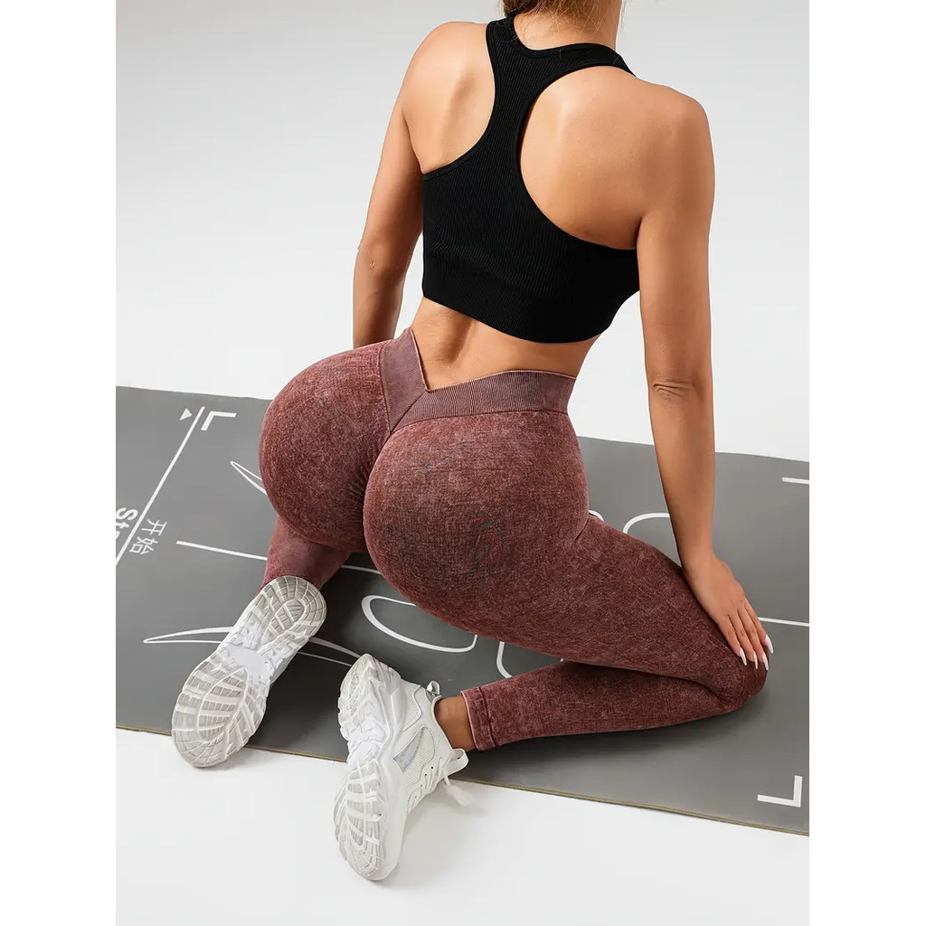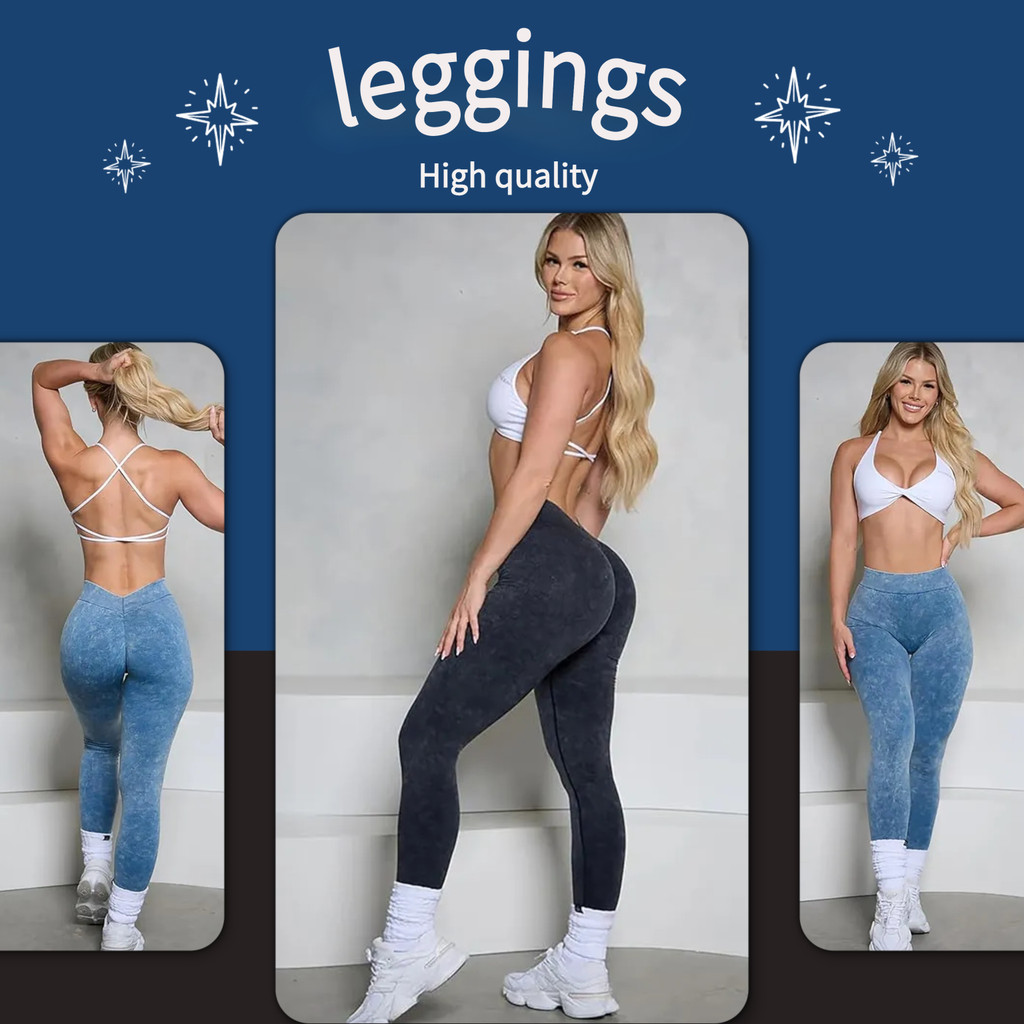 Leggings de cintura alta lavadas nas costas em V para levantamento de quadril feminino/respirável para ciclismo com list