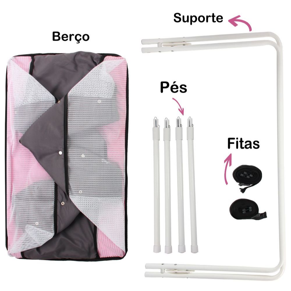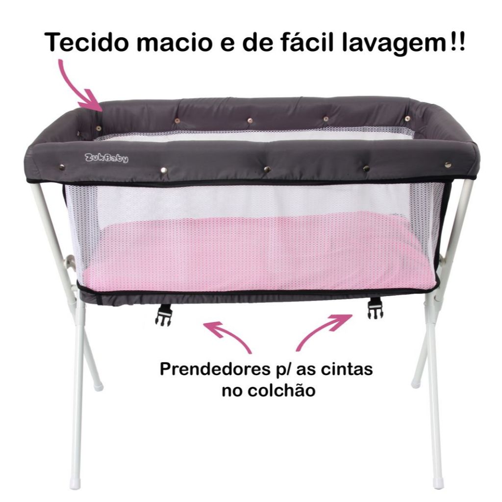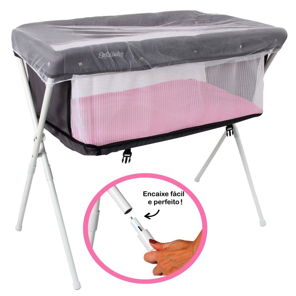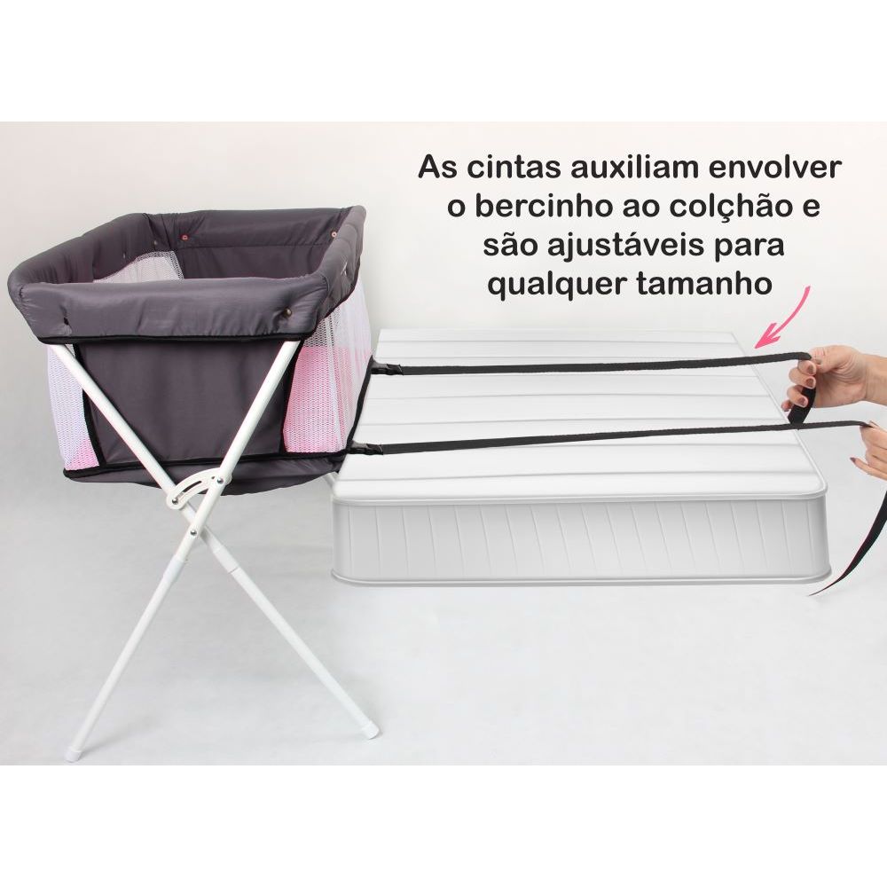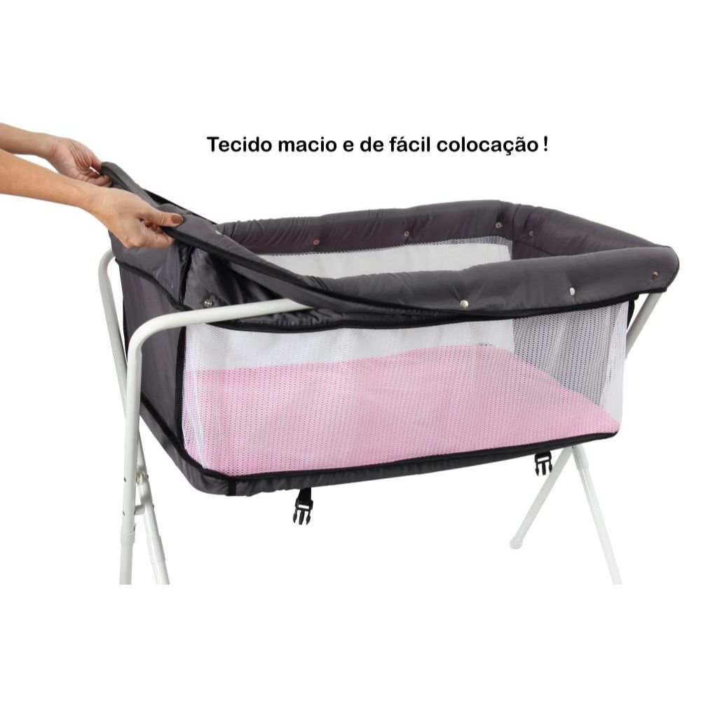 Berço Bercinho Co-leito Portátil Lado Lado Cama Bebê Moises 9kg Rosa