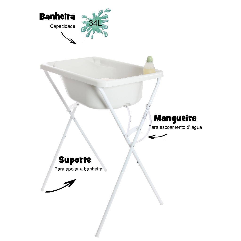 Banheira Ofurô Luxo Com Suporte E Trocador Bebê Infantil Menino Menina Resistente