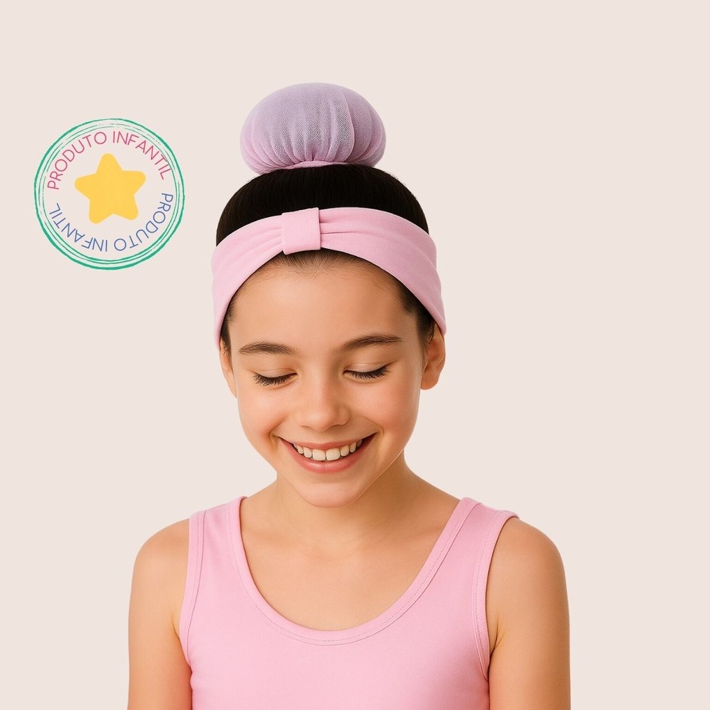 Kit Meia Calça Fina Faixa e Redinha de Ballet para Cabelo