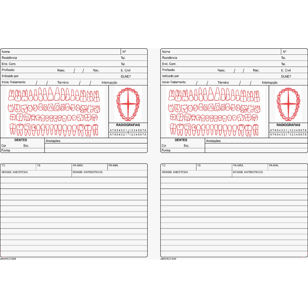 Ficha Clinica Dupla - Odontológico 2 Pacote Com 100 unidades Cada