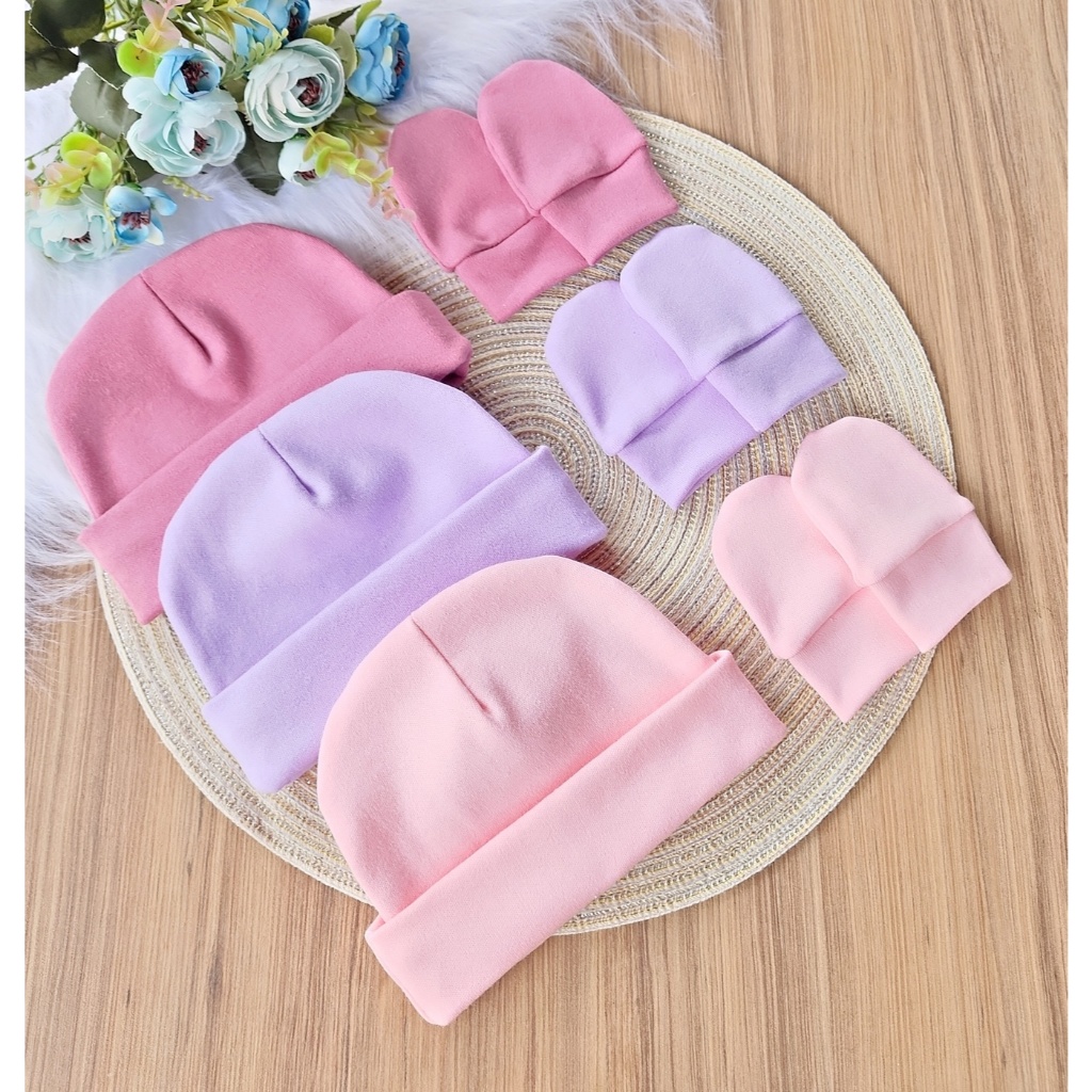 Kit 3 Touca e 3 Luva Para Bebê Recém Nascido 100% Algodão Antialérgico Maternidade