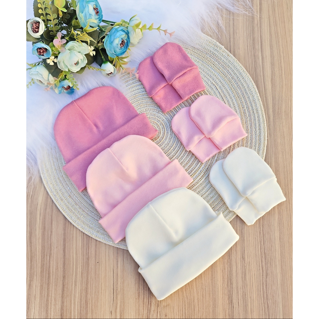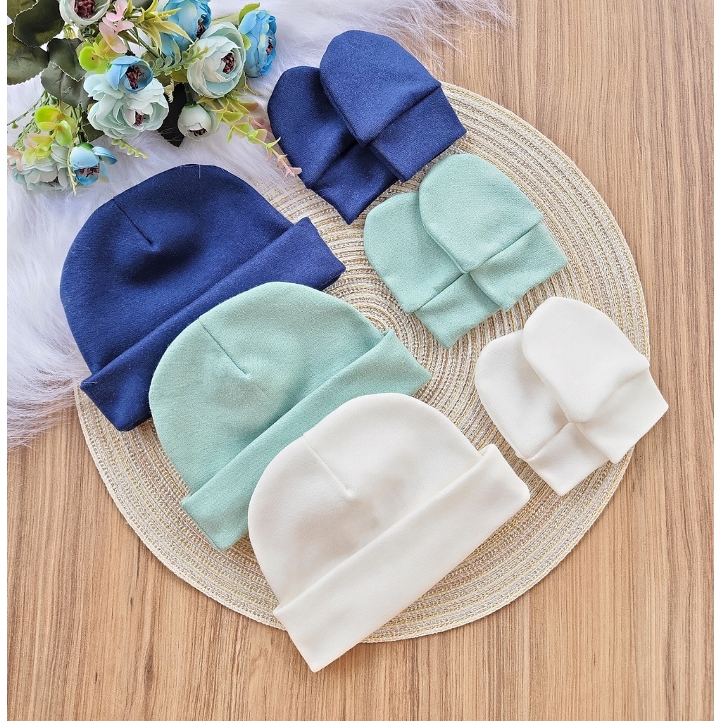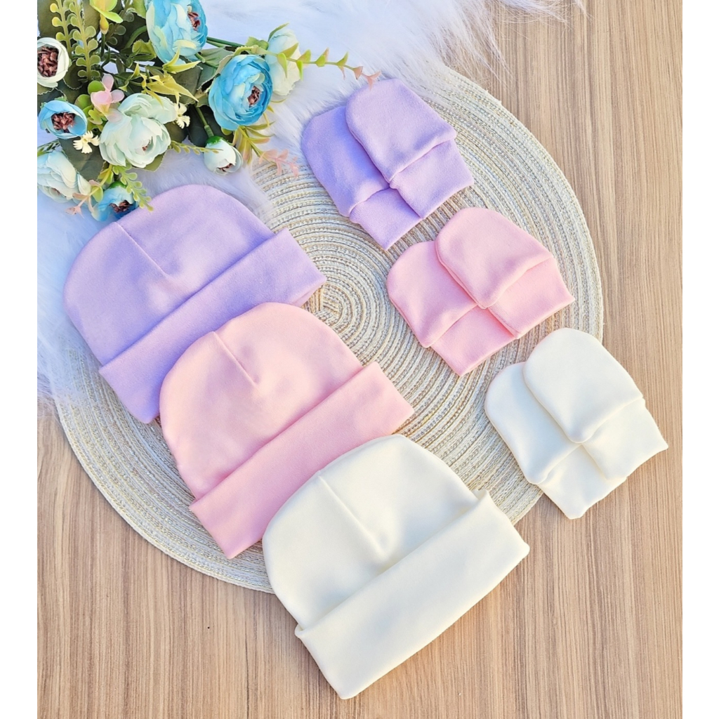 Kit 3 Touca e 3 Luva Para Bebê Recém Nascido 100% Algodão Antialérgico Maternidade
