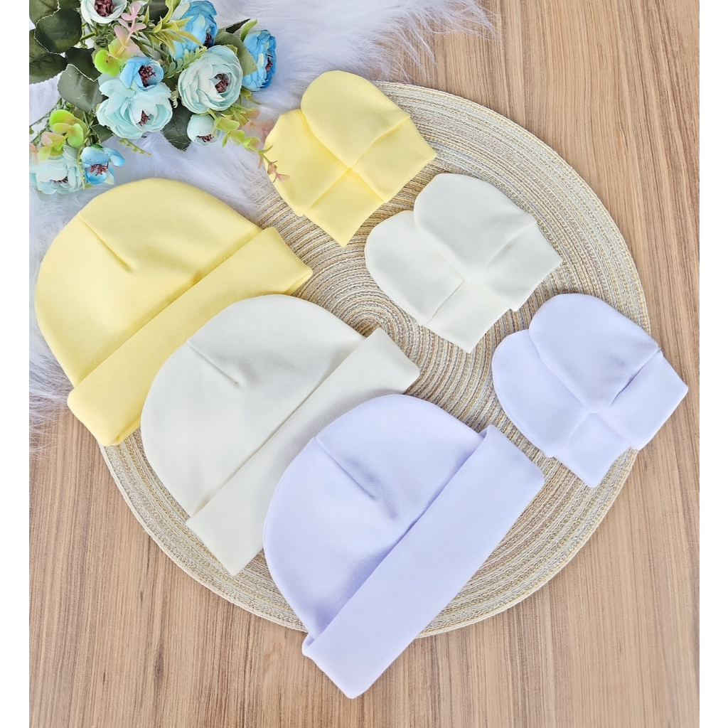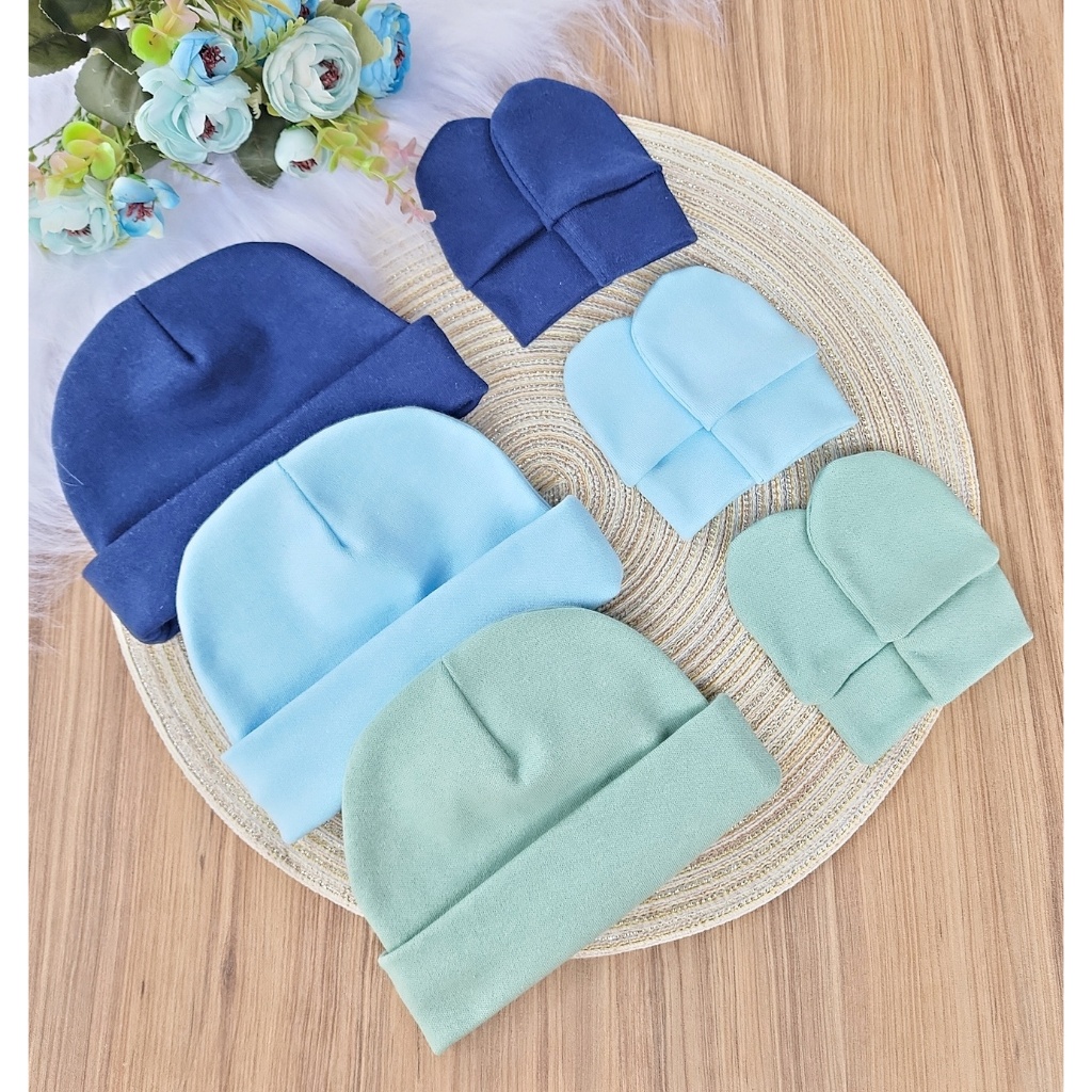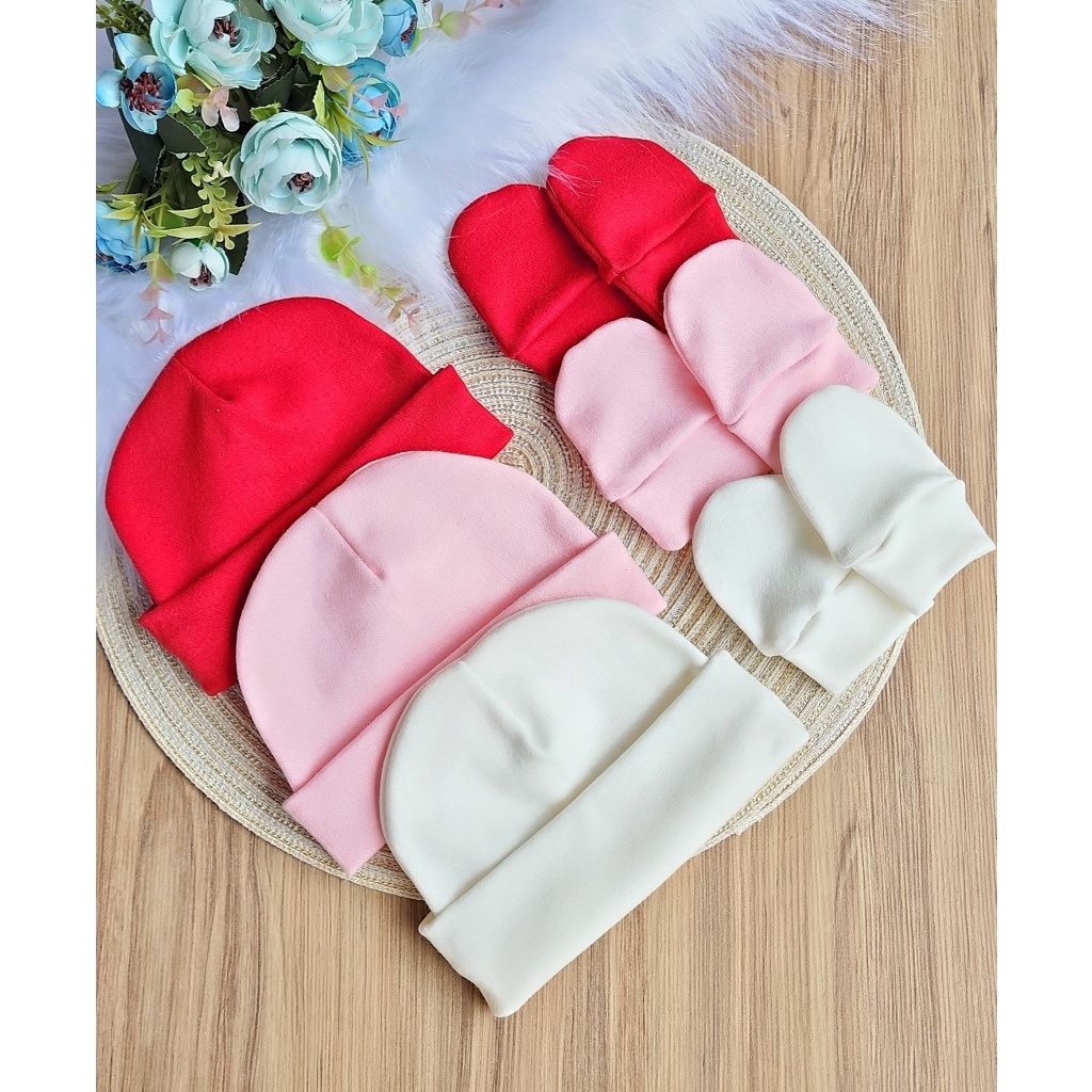 Kit 3 Touca e 3 Luva Para Bebê Recém Nascido 100% Algodão Antialérgico Maternidade