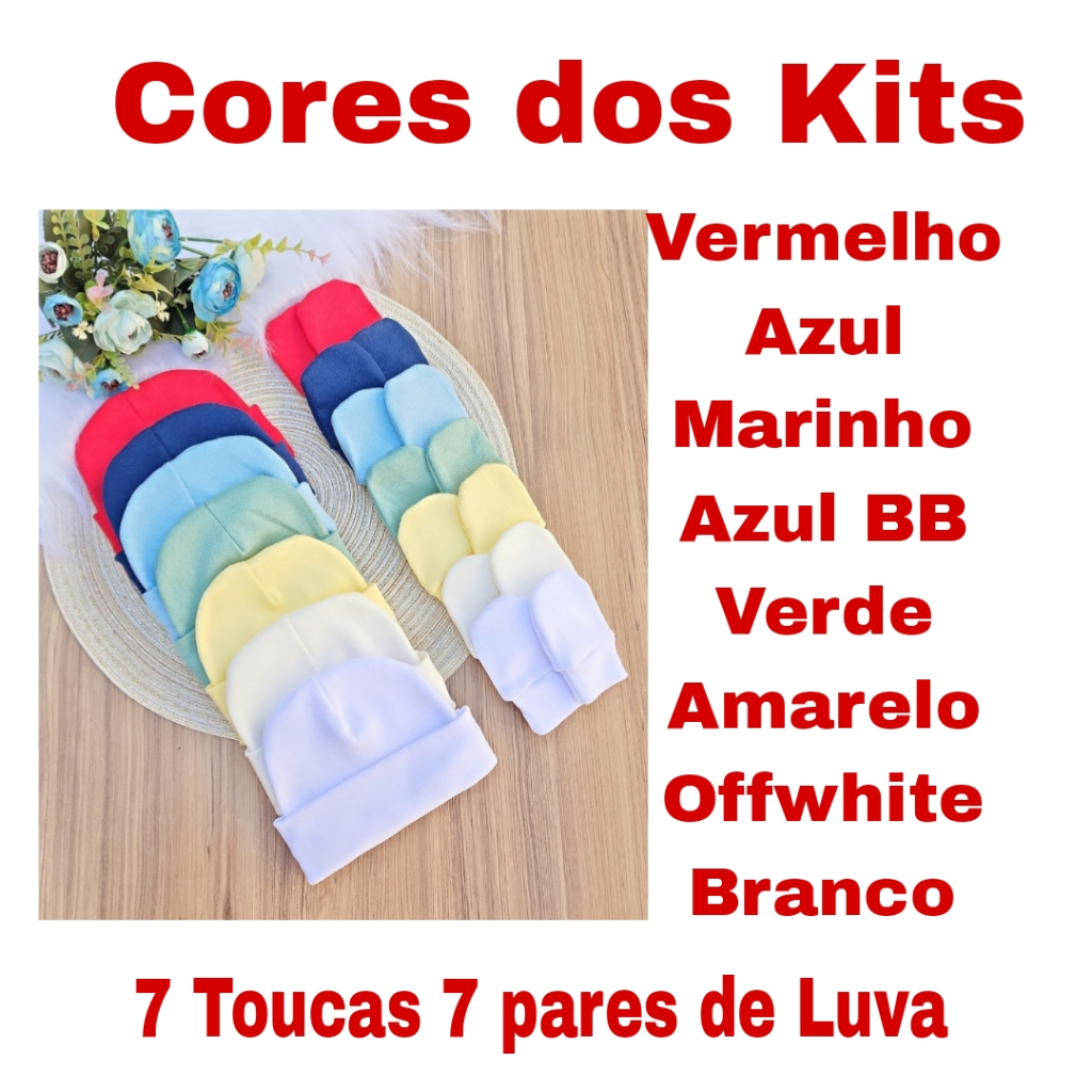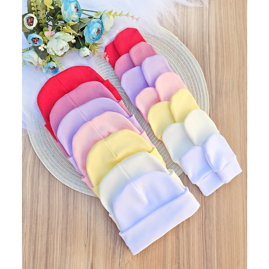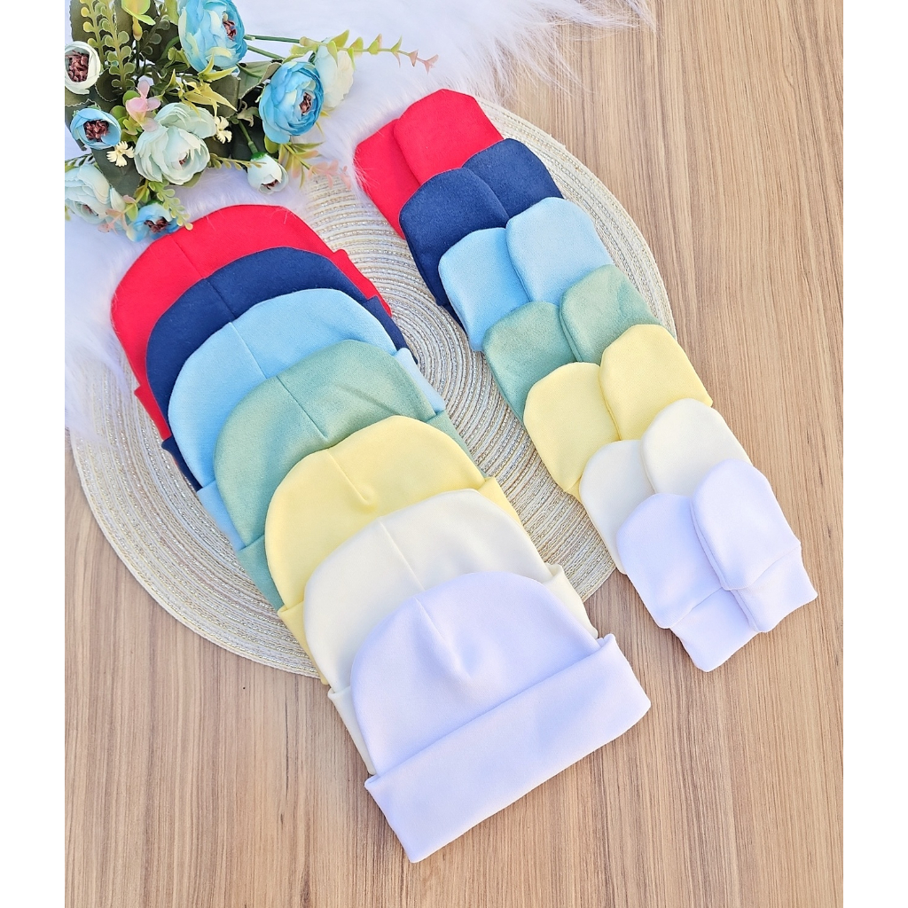 Kit 7 Touca e 7 Luva Para Bebê Recém Nascido 100% Algodão Antialérgico Maternidade