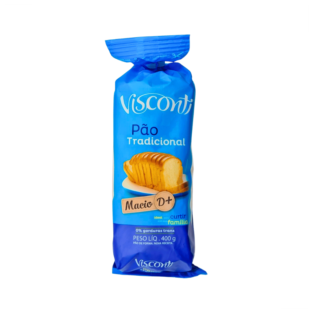 Pão de Forma Tradicional Visconti 400G - Caixa 10 Unidades Pacote 400g Cada Café da Manhã e Lanches.