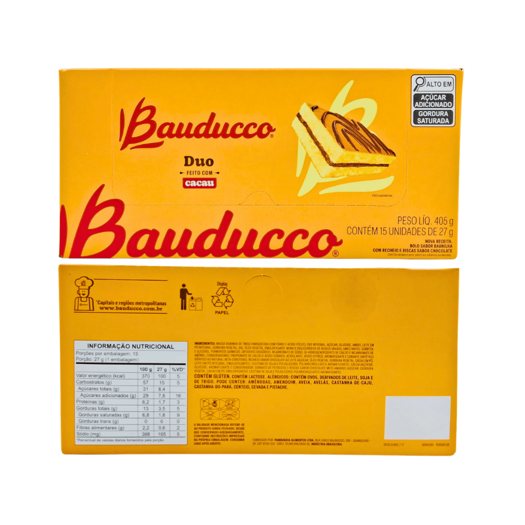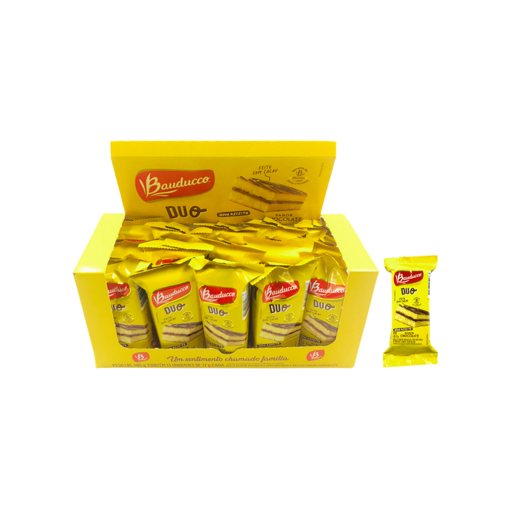 Bolinho Duo Bauducco 27g Chocolate 34g Kit Caixa Display c/ 15 Unidades Embalados Individualmente
