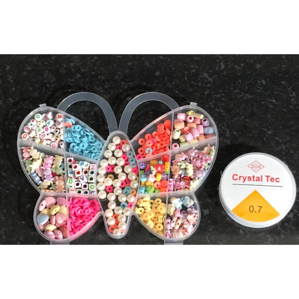 Kit Miçangas Infantil Pulseiras E Colar Maleta Florzinha, Borboleta e Minnie Bijuteria para Crianças