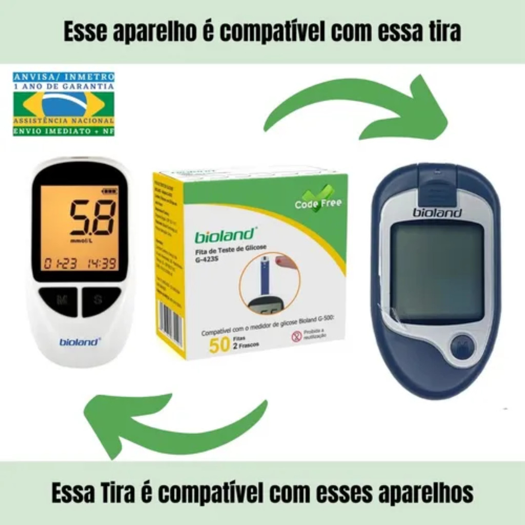 Fita Tira Teste De Glicose Glicemia G-423s Bioland C/50 Un