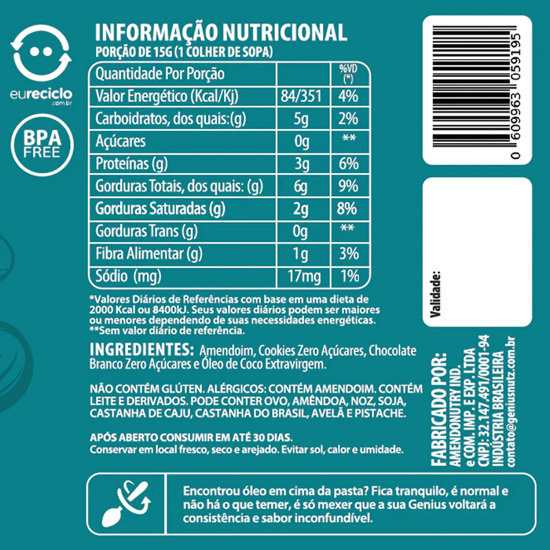 Creme de Amendoim 200g Cookies & Cream - GENIUS NUTZ