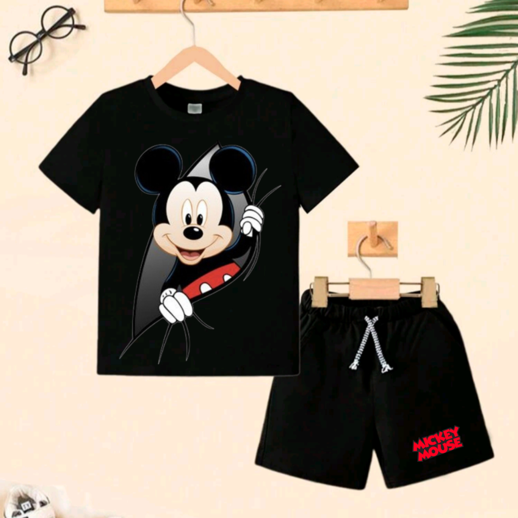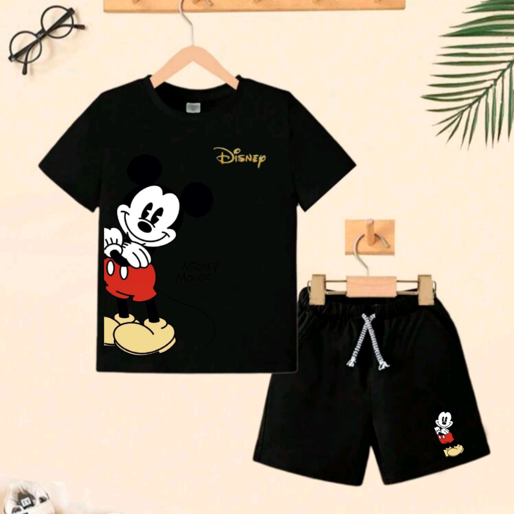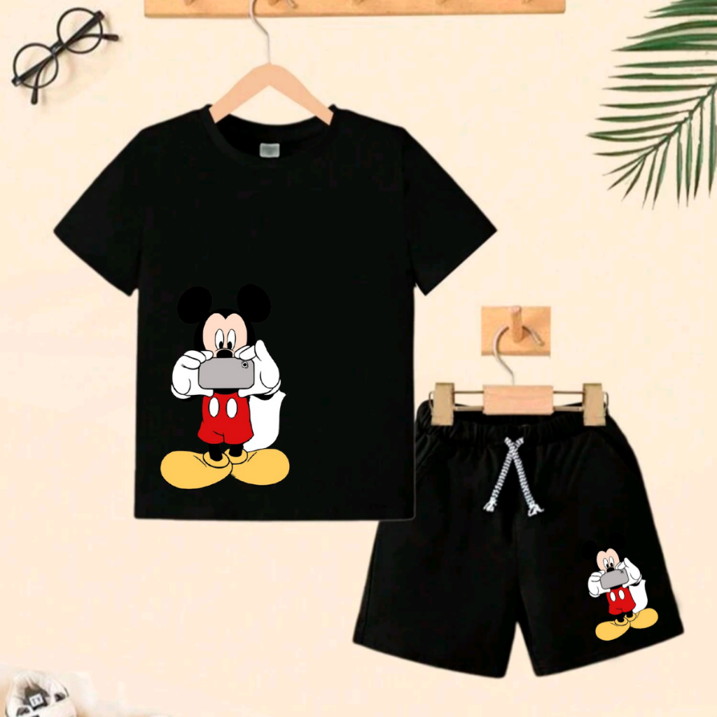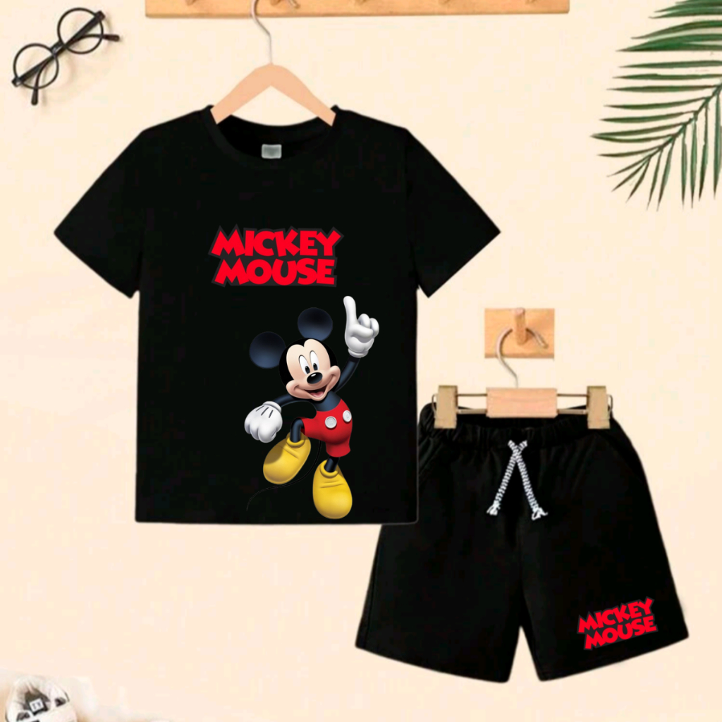 Conjunto de camiseta 100% algodão e bermuda de Moletom com bolso lateral de menino, verão do Mickey Mouse