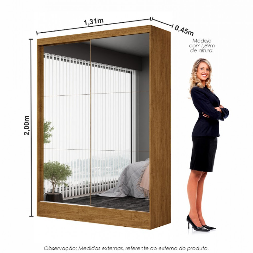 Guarda-Roupa Belem Premium 2 Portas de Correr 2 Gavetas com Espelho