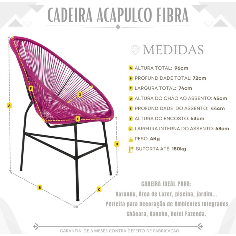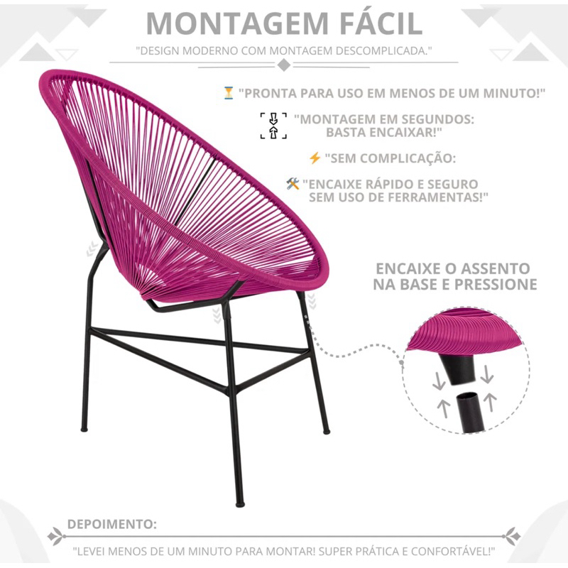 Cadeira Acapulco Pink Confortável para Sala, Área Externa e Varanda