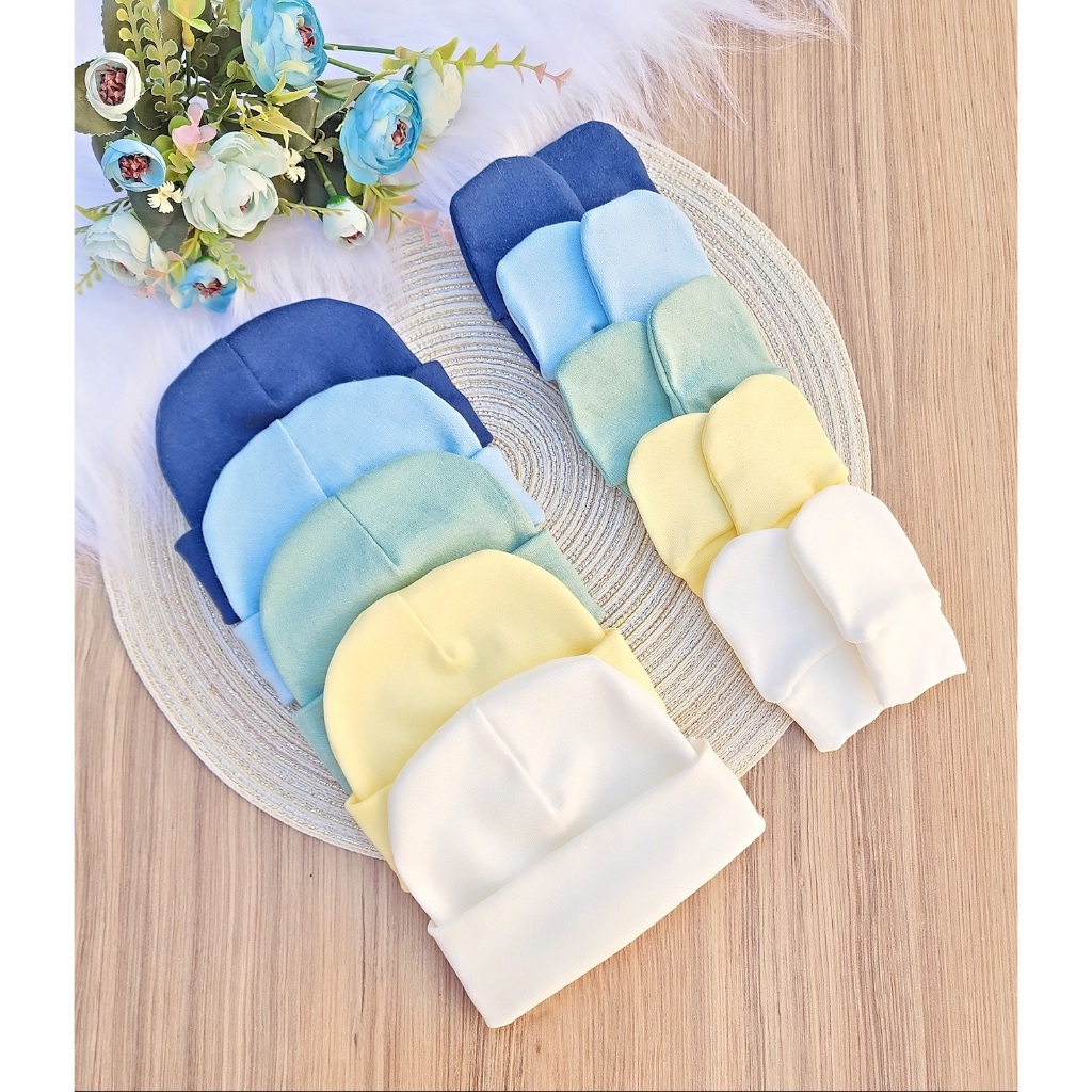 Kit 5 Touca e 5 Luva Para Bebê Recém Nascido 100% Algodão Antialérgico Maternidade Enxoval Gestante