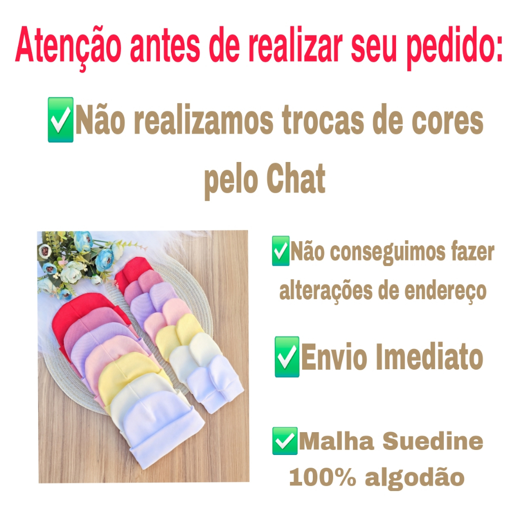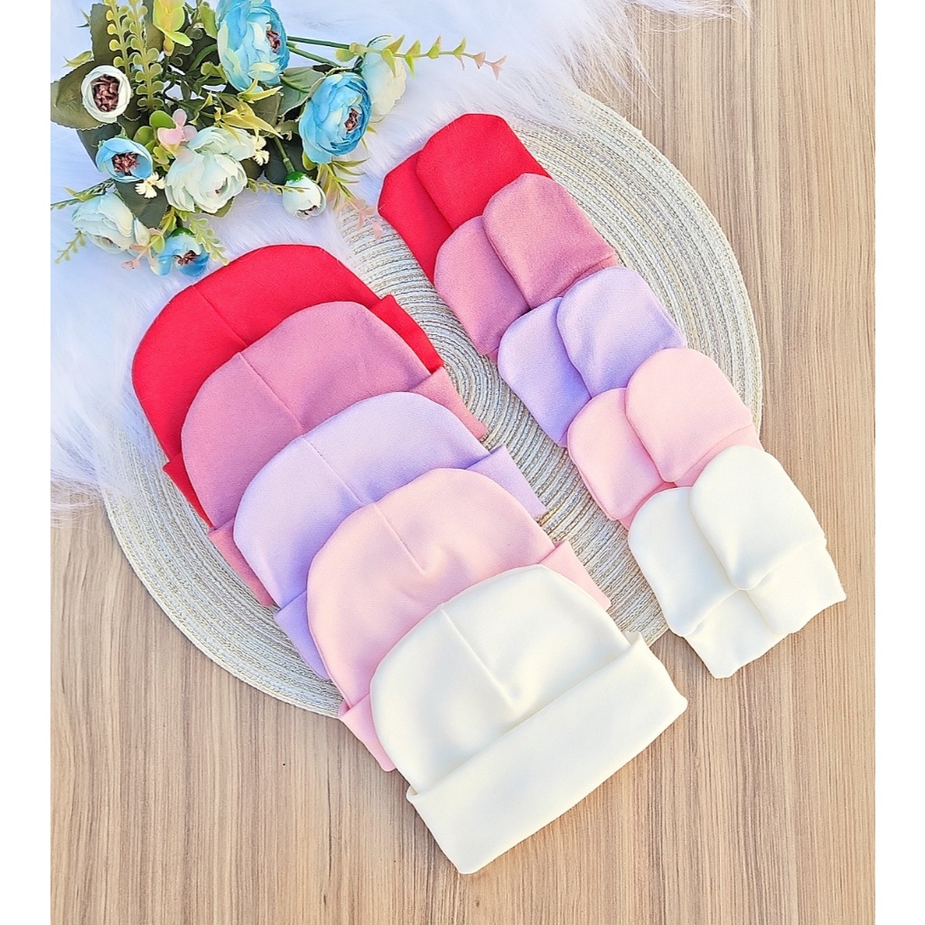 Kit 5 Touca e 5 Luva Para Bebê Recém Nascido 100% Algodão Antialérgico Maternidade Enxoval Gestante