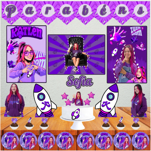 Kit Festa Grupo dos Rosas Ketlen, Os Rosas Só Um Bolinho + Topper, Decoração - Festa na Escola