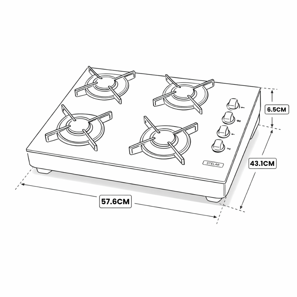 Fogão Cooktop De Mesa Portátil A Gás 4 Bocas Euro Stelar Preto