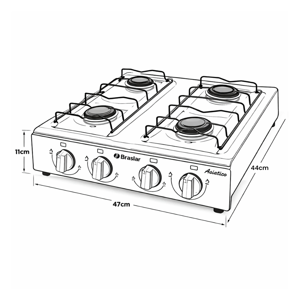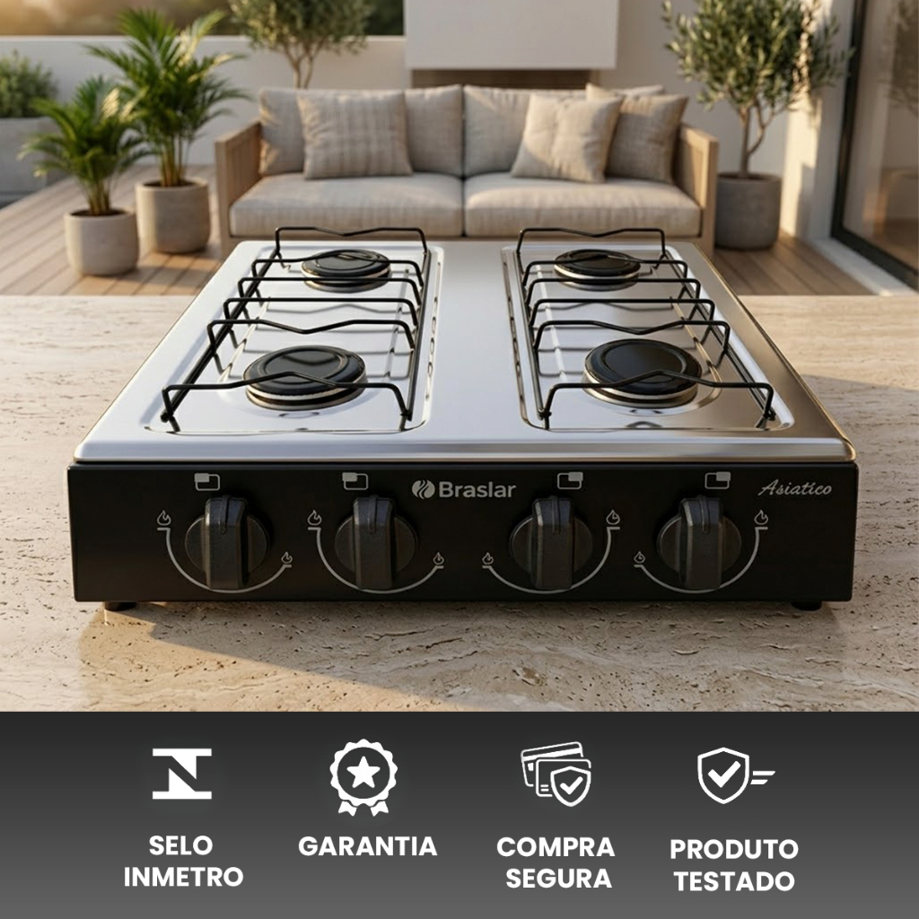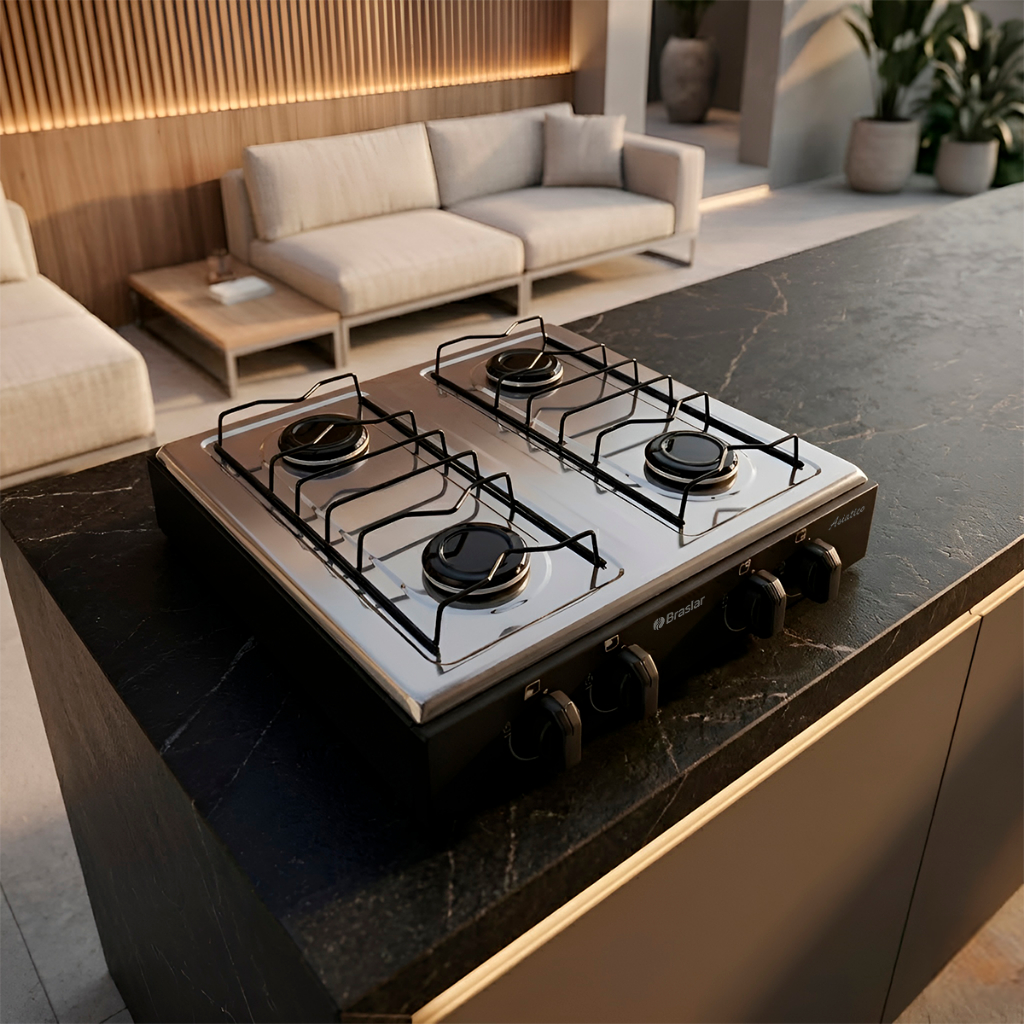 Fogão Cooktop De Mesa Portátil A Gás 4 Bocas Braslar Preto