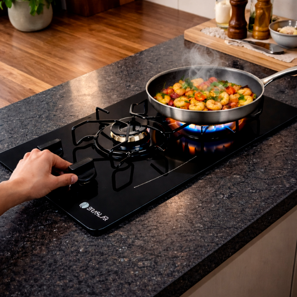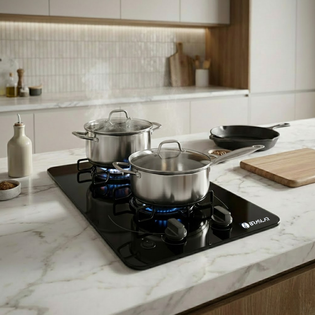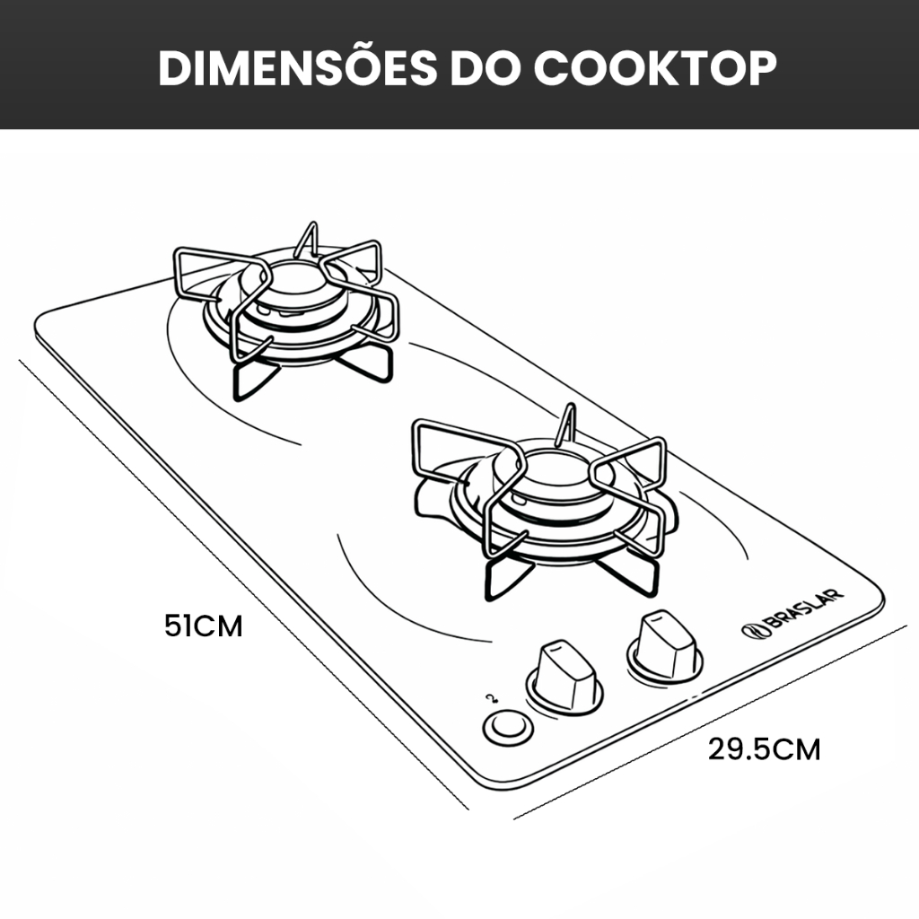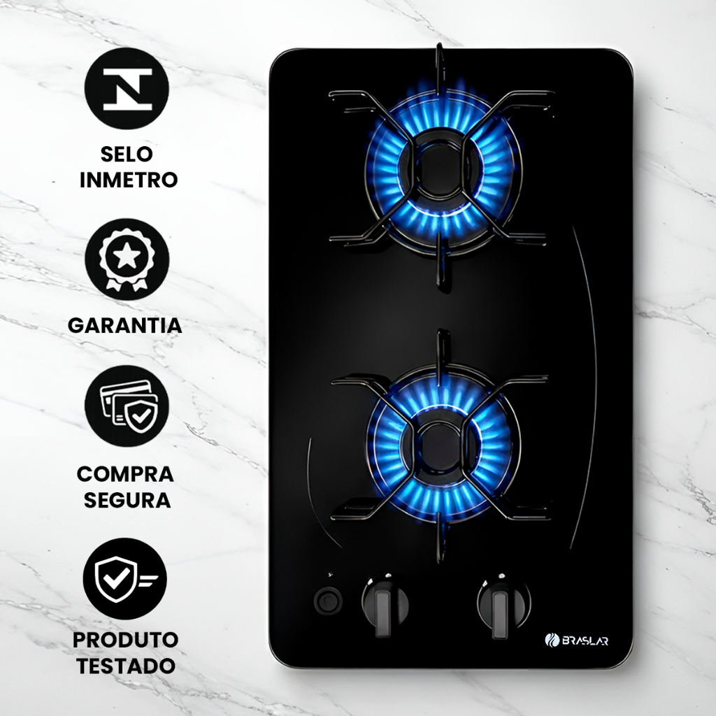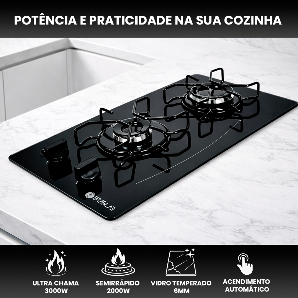 Fogão Cooktop 2 Bocas a Gás Ultra Chama 127V/220V Bivolt Acendimento Automático Vidro Braslar