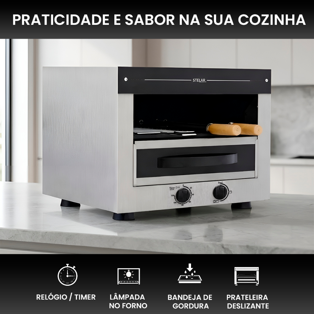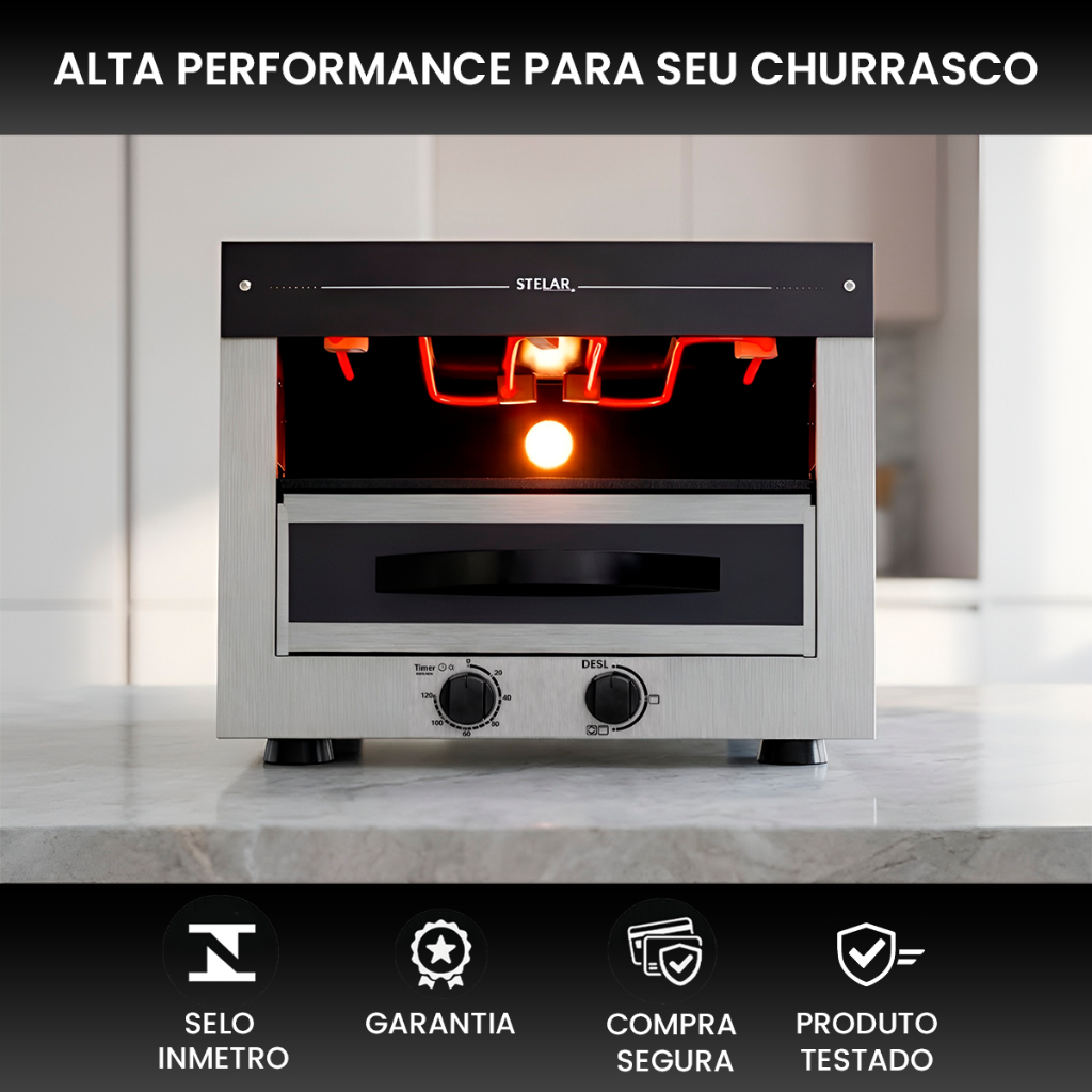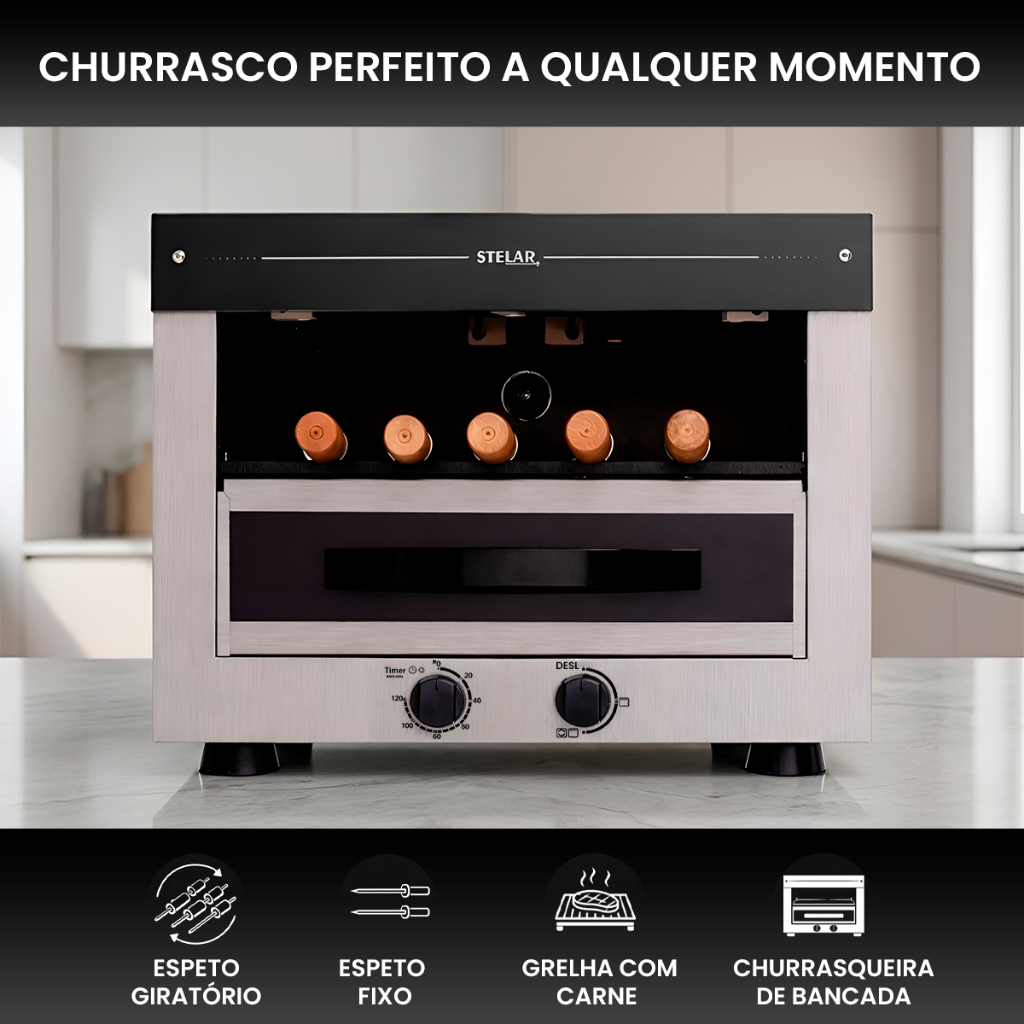 Churrasqueira Elétrica Stelar De Bancada 5 Espetos Cor Prateado