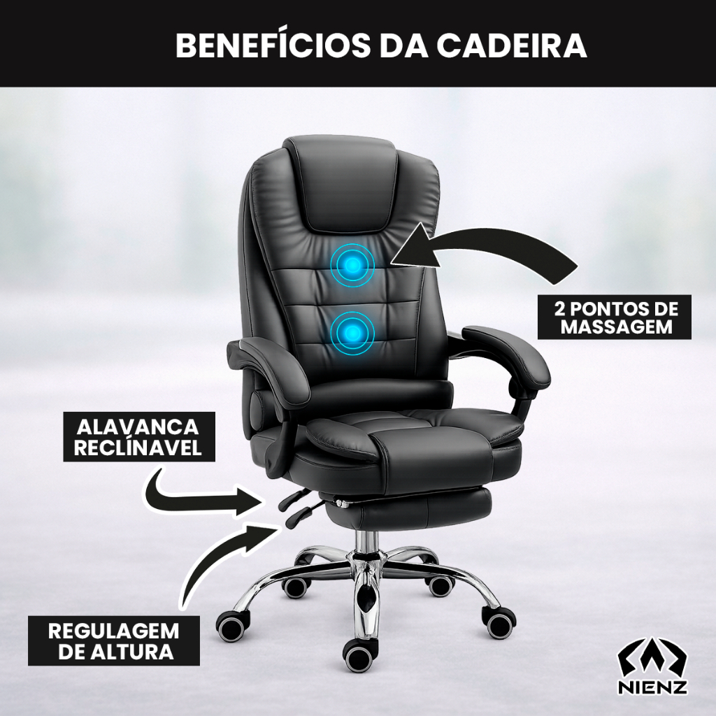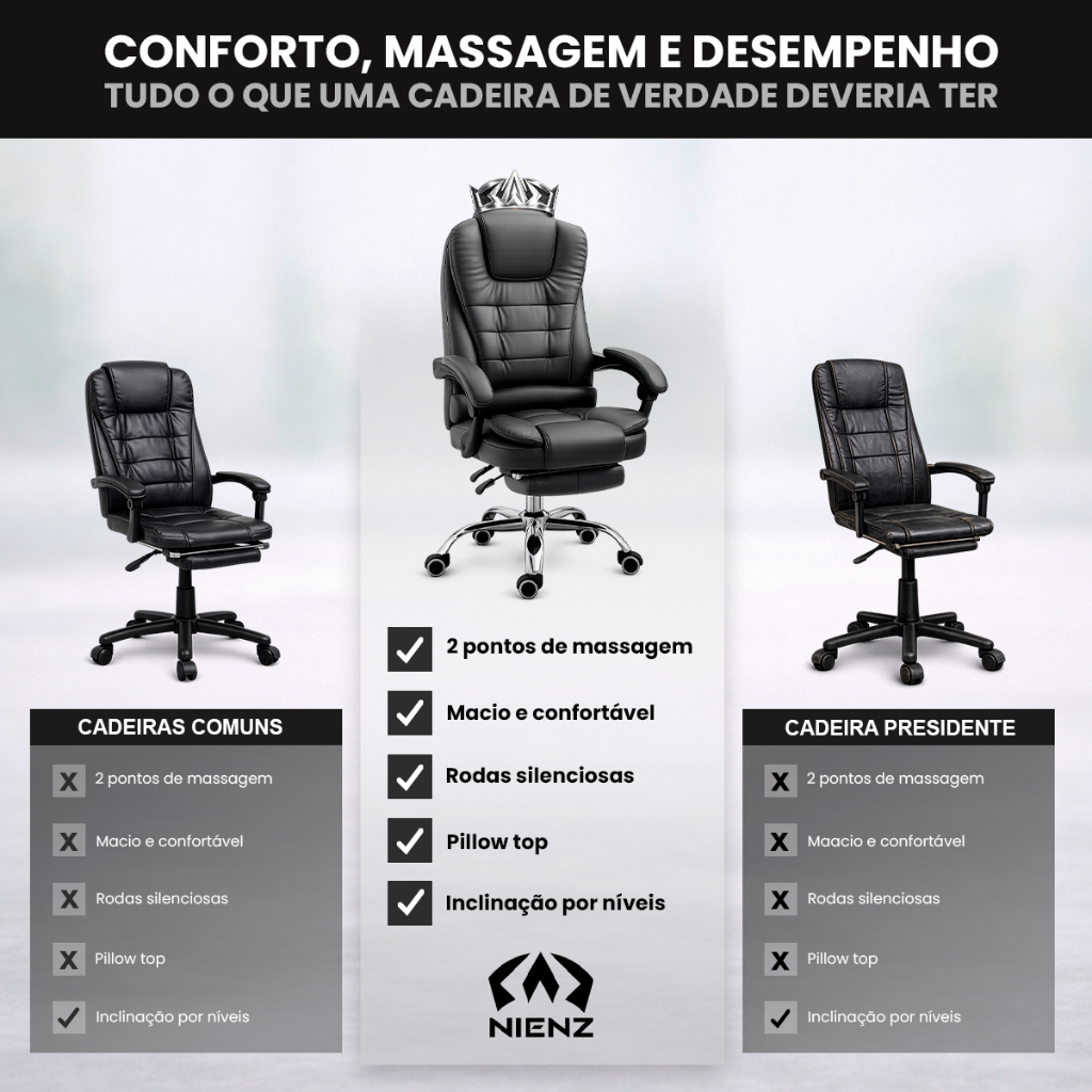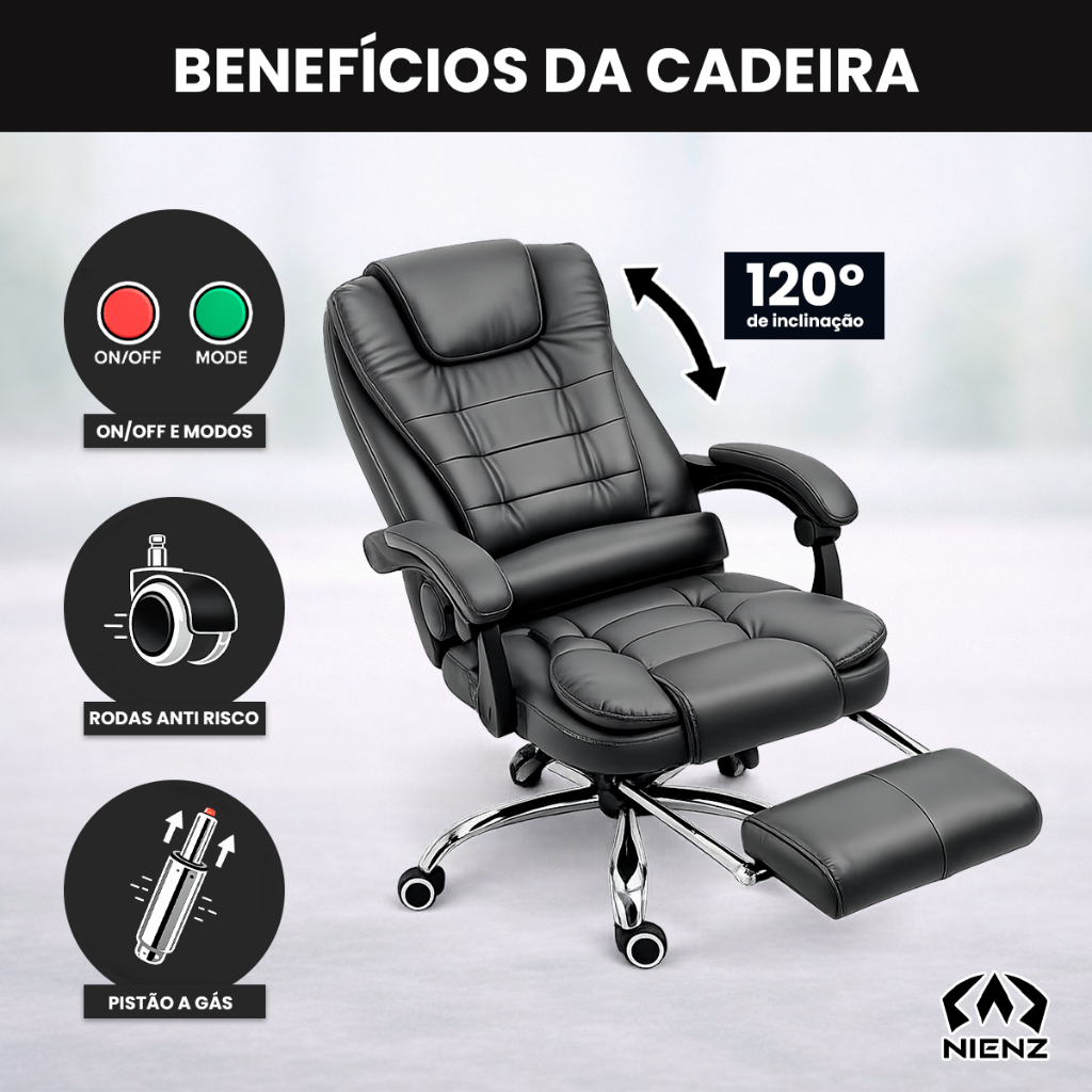 Cadeira De Escritório Delegate Presidente Ergonômica Com Massagem Apoio Para Pés Couro Nienz