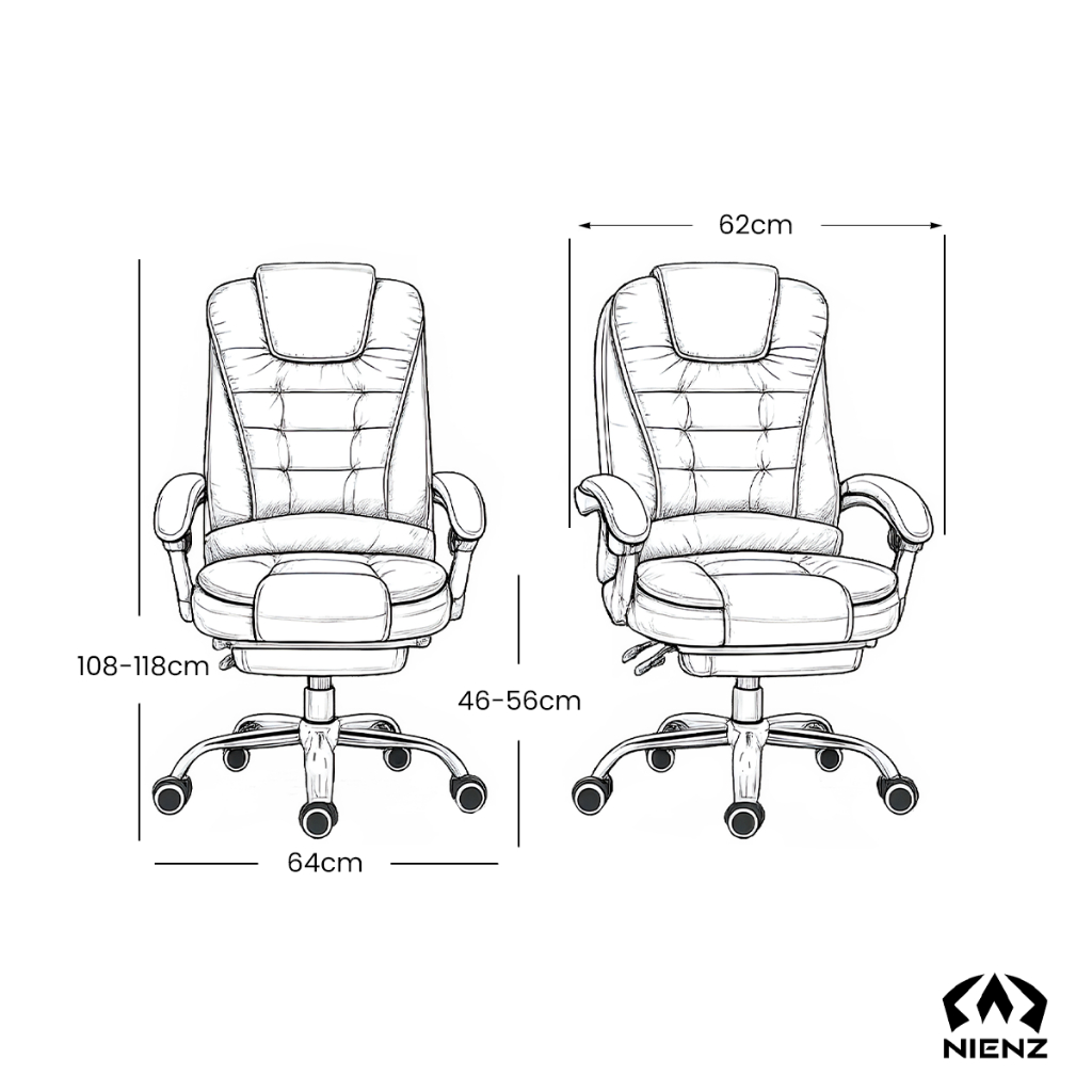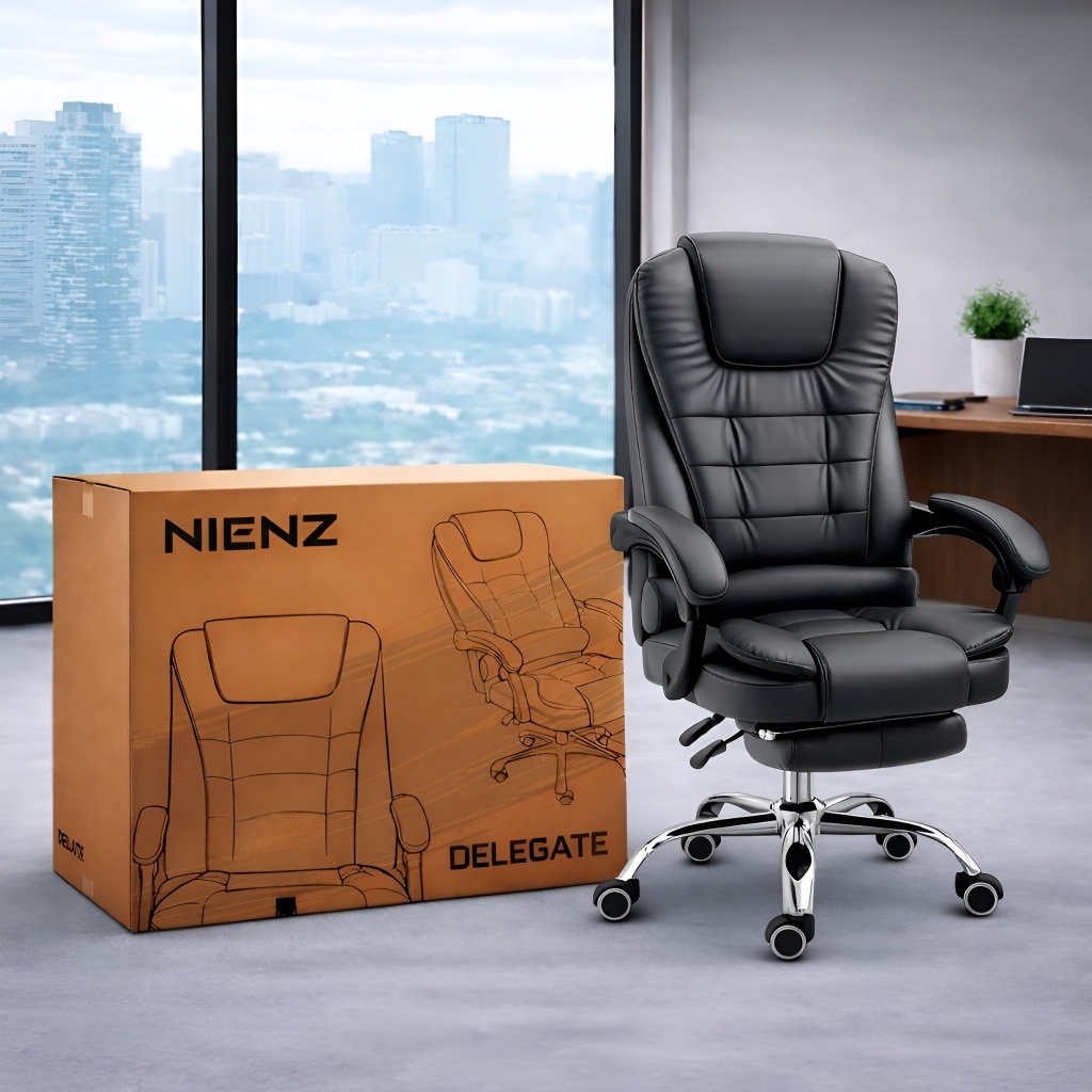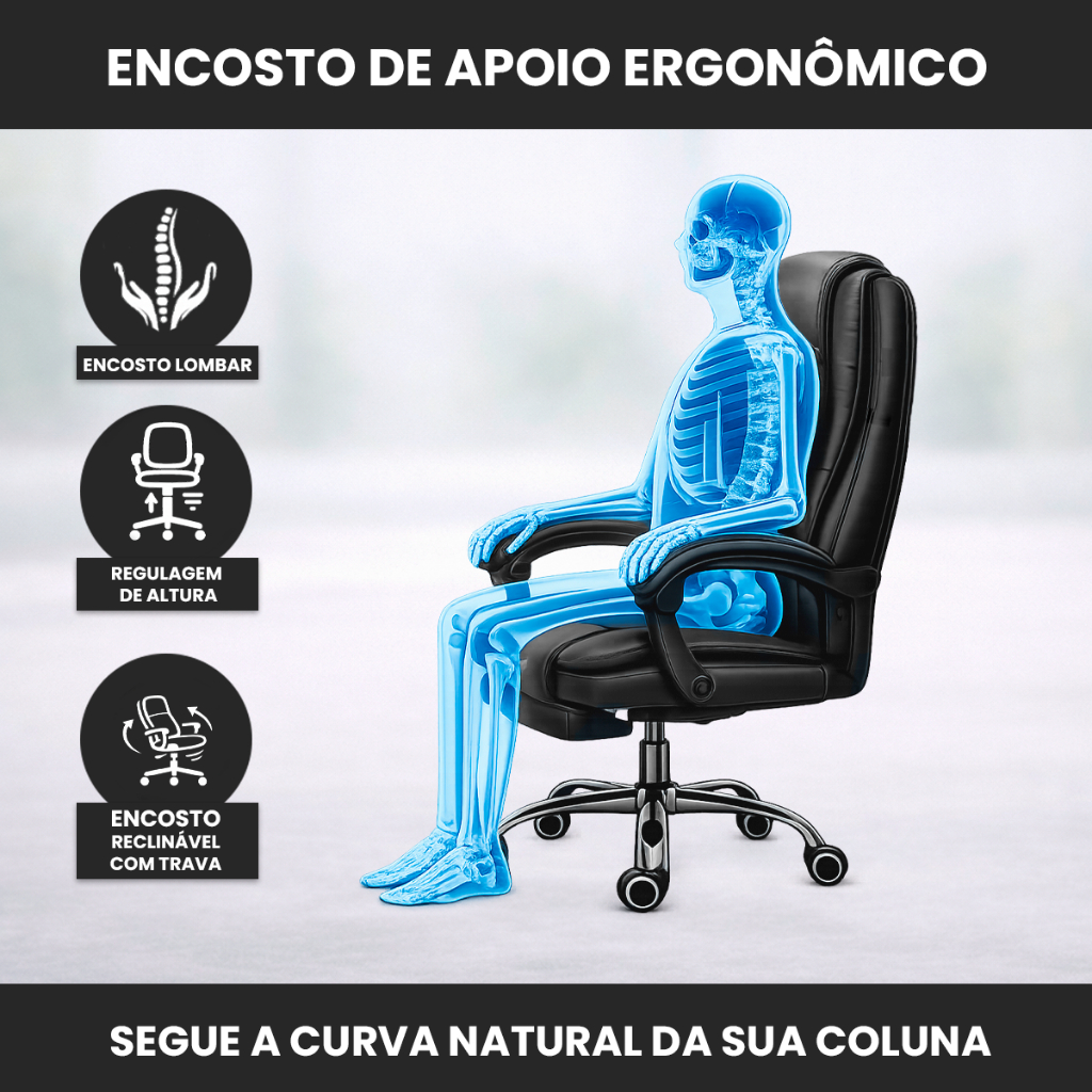 Cadeira De Escritório Delegate Presidente Ergonômica Com Massagem Apoio Para Pés Couro Nienz