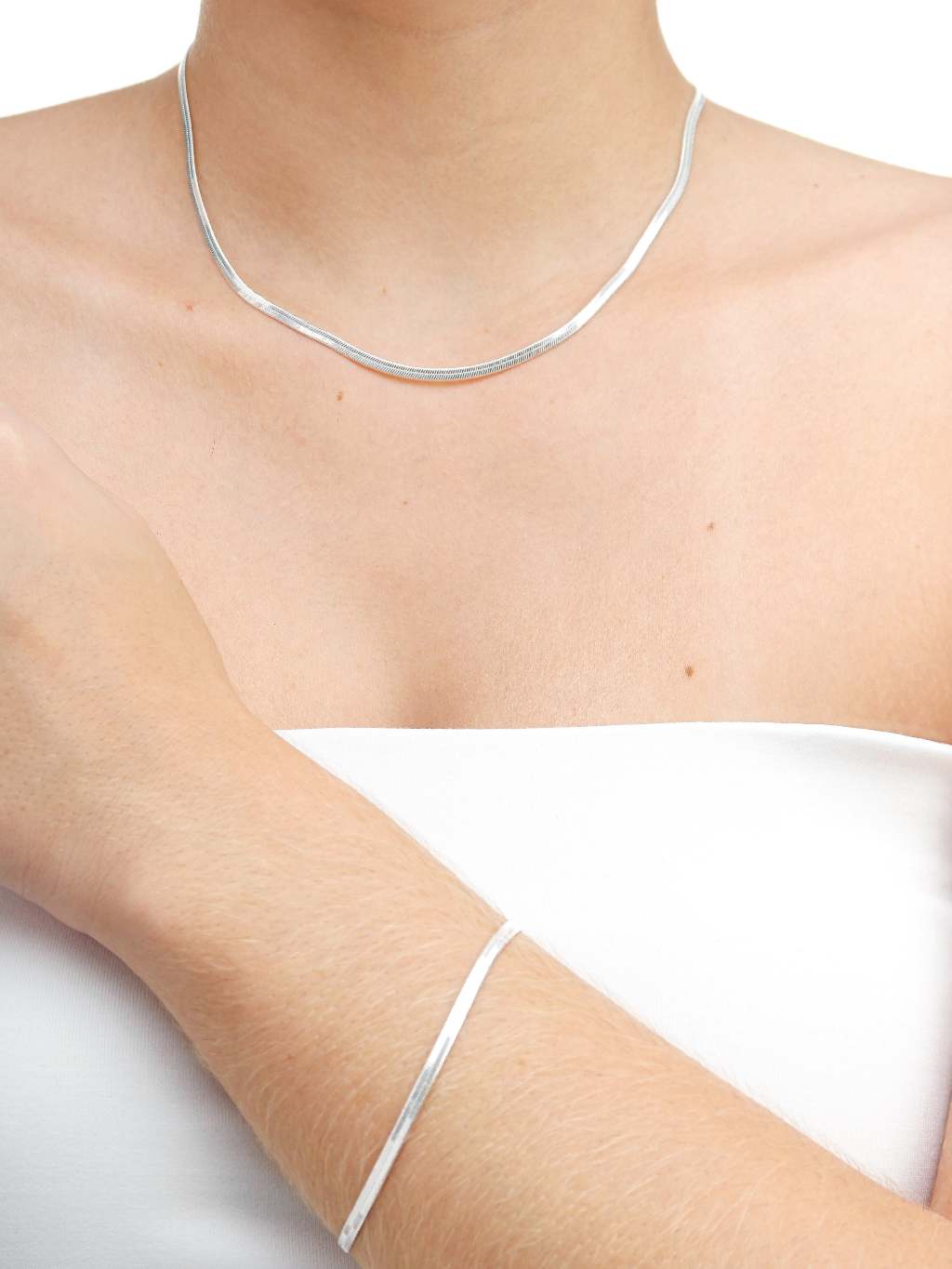 Conjunto fita prata F925, colar + pulseira fita