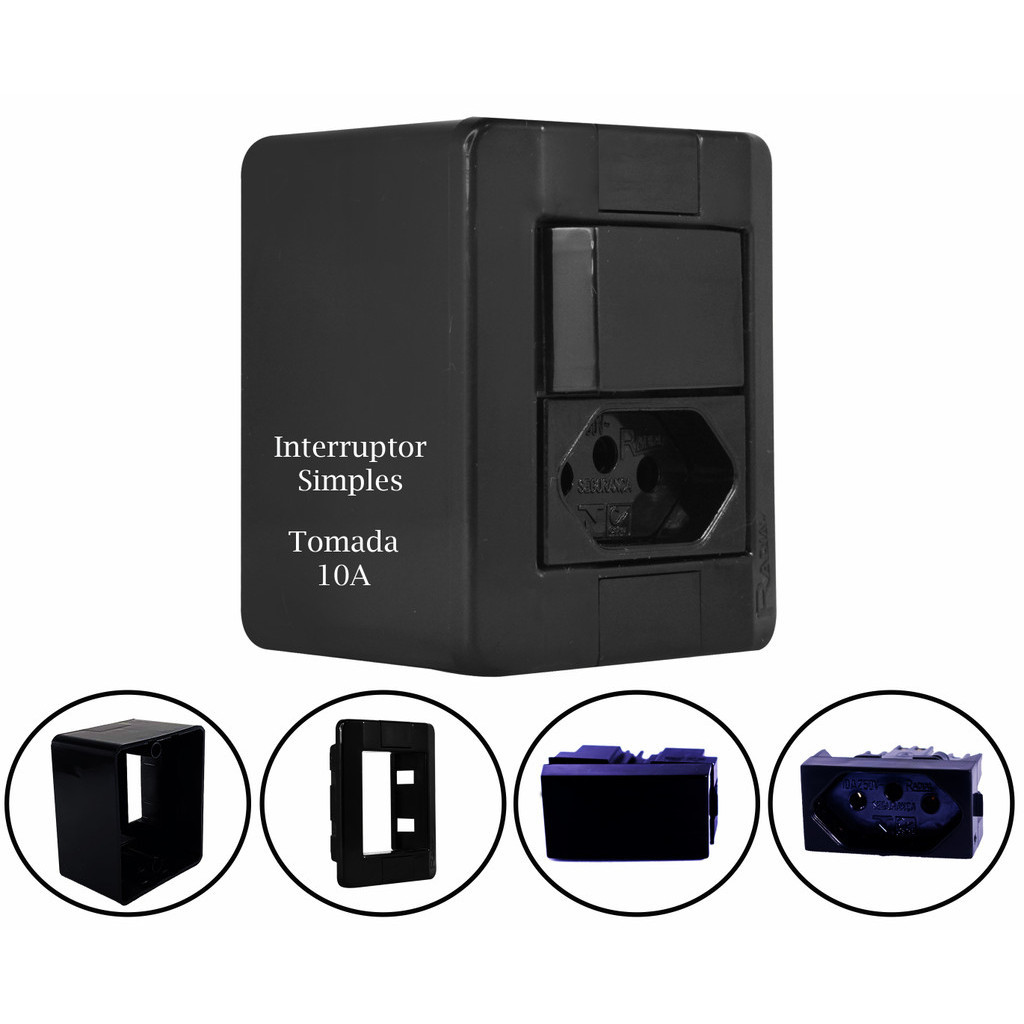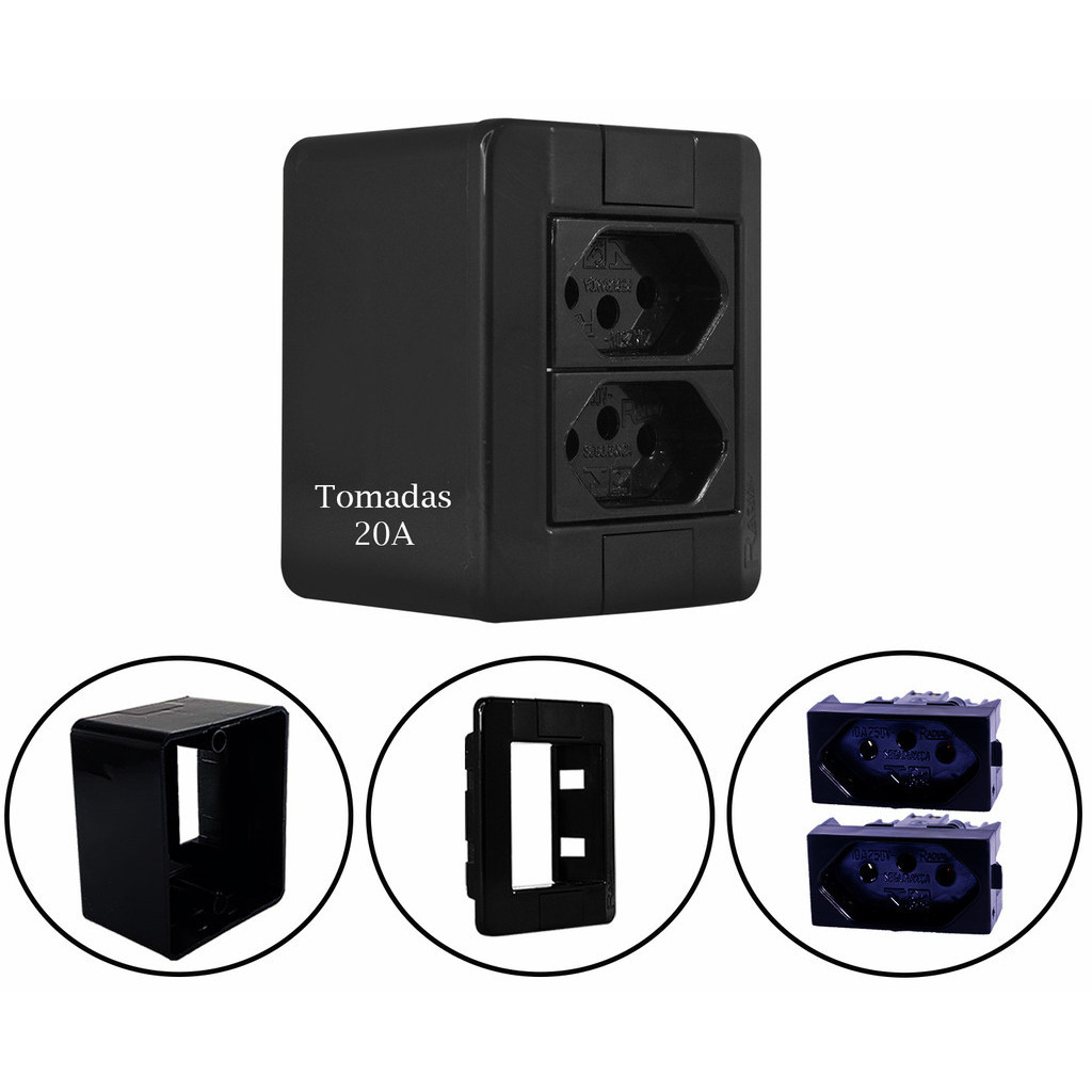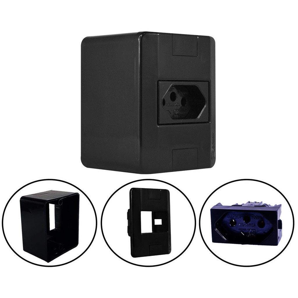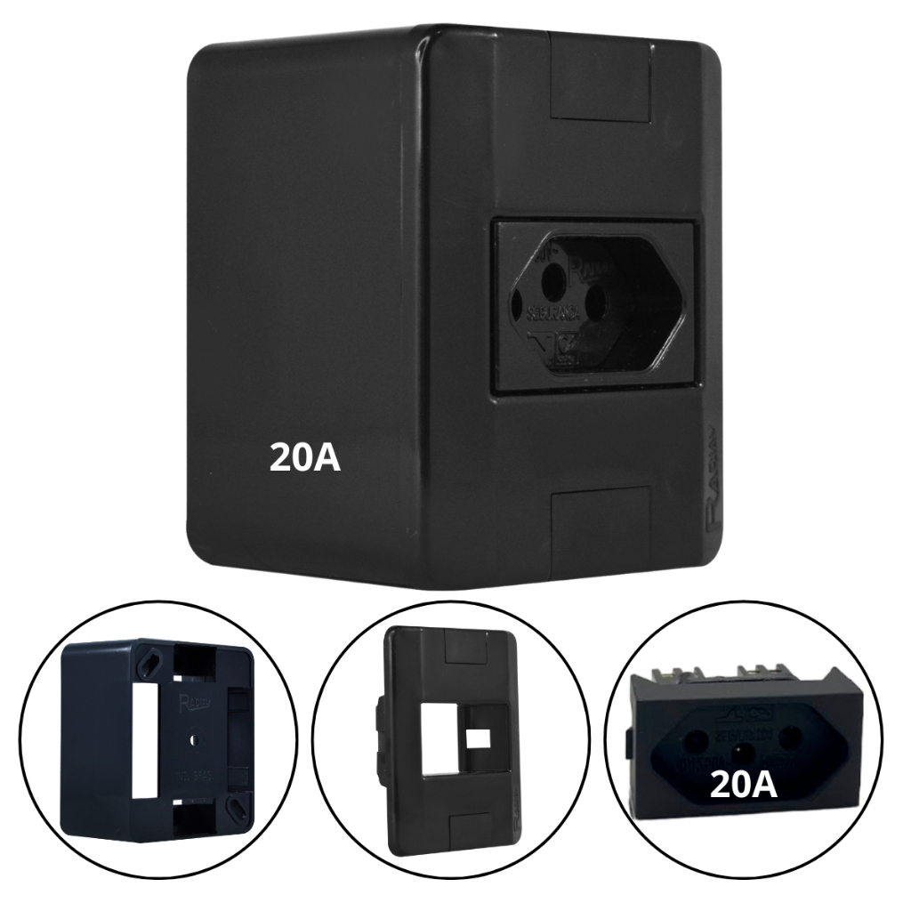 Conjunto Tomada e Interruptores 10A/20A Sobrepor Sistema X Modular Black (Preta) Radial