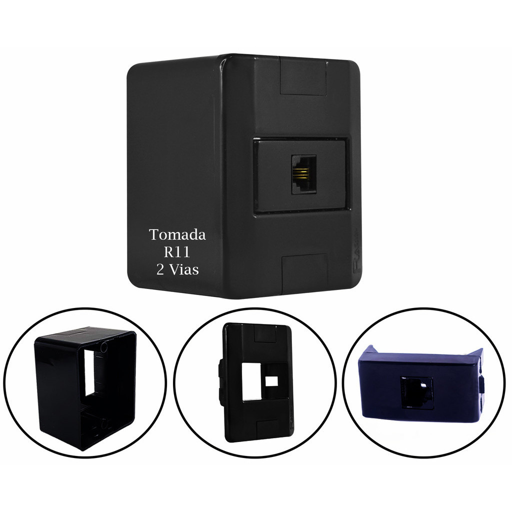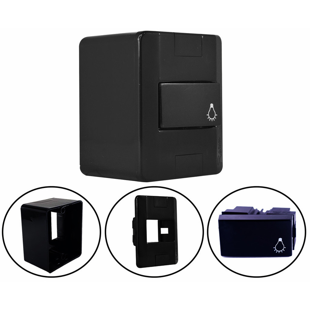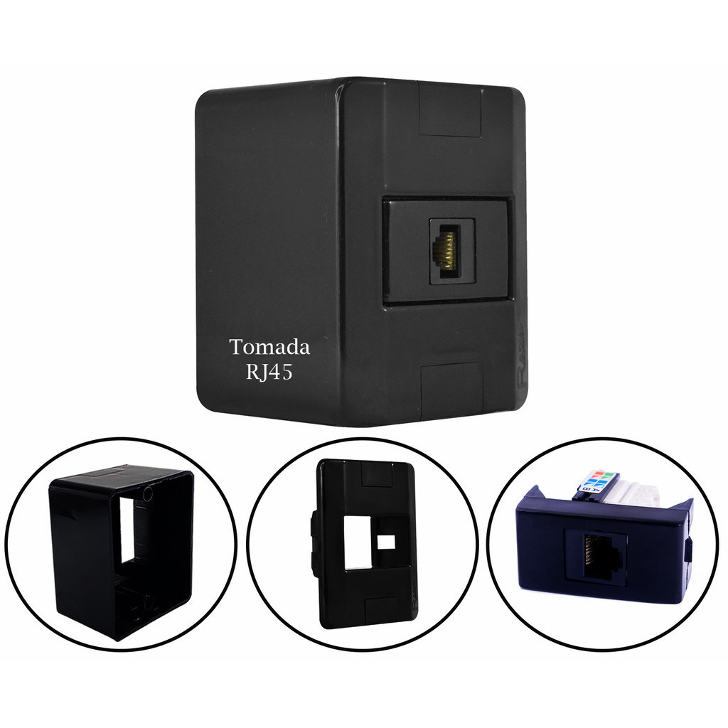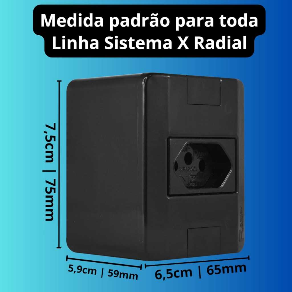 Conjunto Tomada e Interruptores 10A/20A Sobrepor Sistema X Modular Black (Preta) Radial