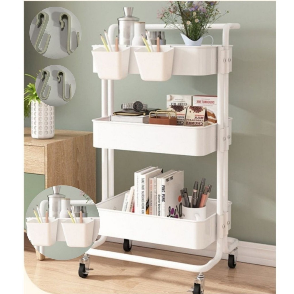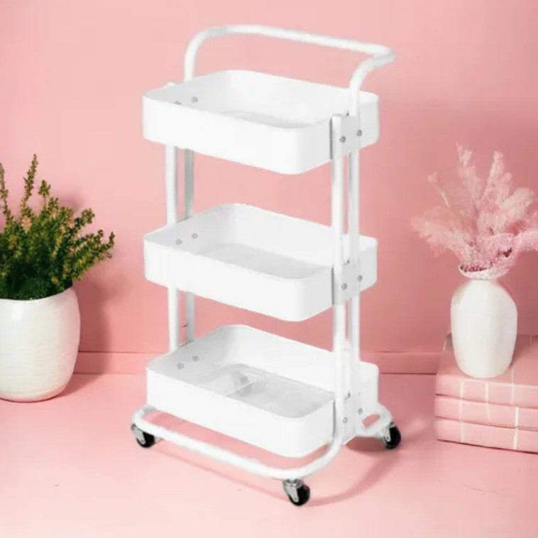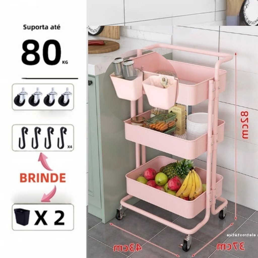 Carrinho Organizador Multiuso 3 Prateleiras e Alça Auxiliar Em Aço Com Rodinha Entrega rápida.