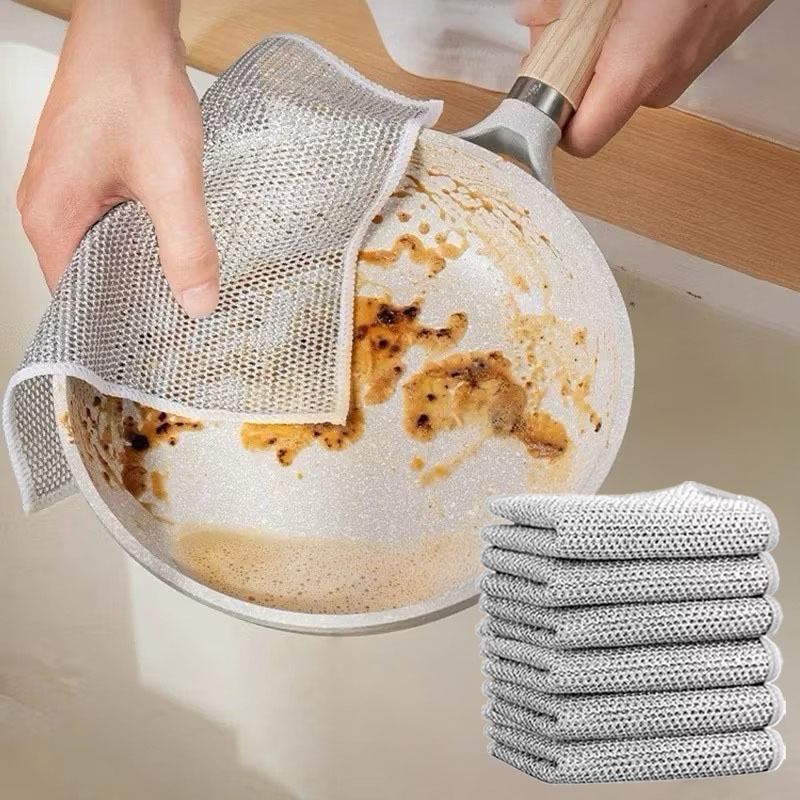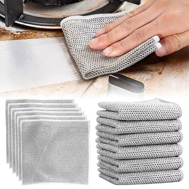 Kit de Panos de Limpeza de Aço Inoxidável (Aramados) - Reutilizáveis para Fogão, Louças e Limpeza Doméstica