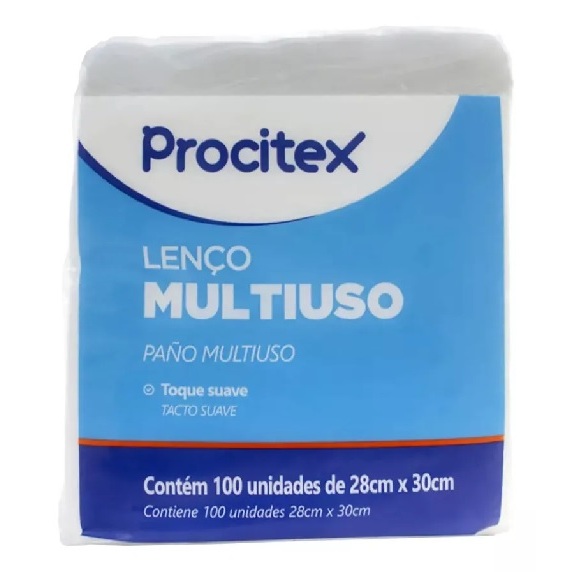 Lenço para Banho Não Tecido 28 X 30 Cm c/ 100 un Procitex
