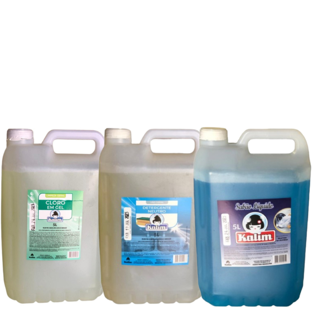 5litros sabão liquido + 5 litros cloro em gel + 5litros detergente neutro