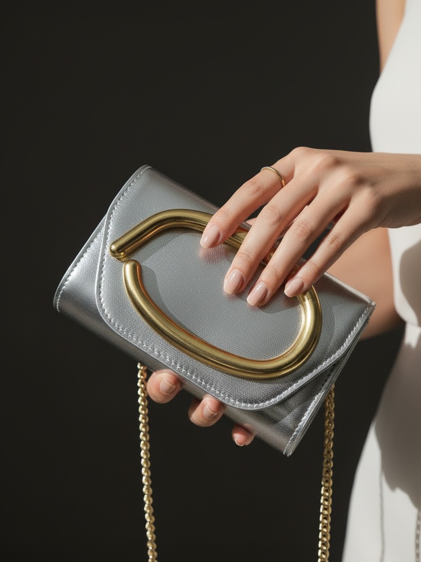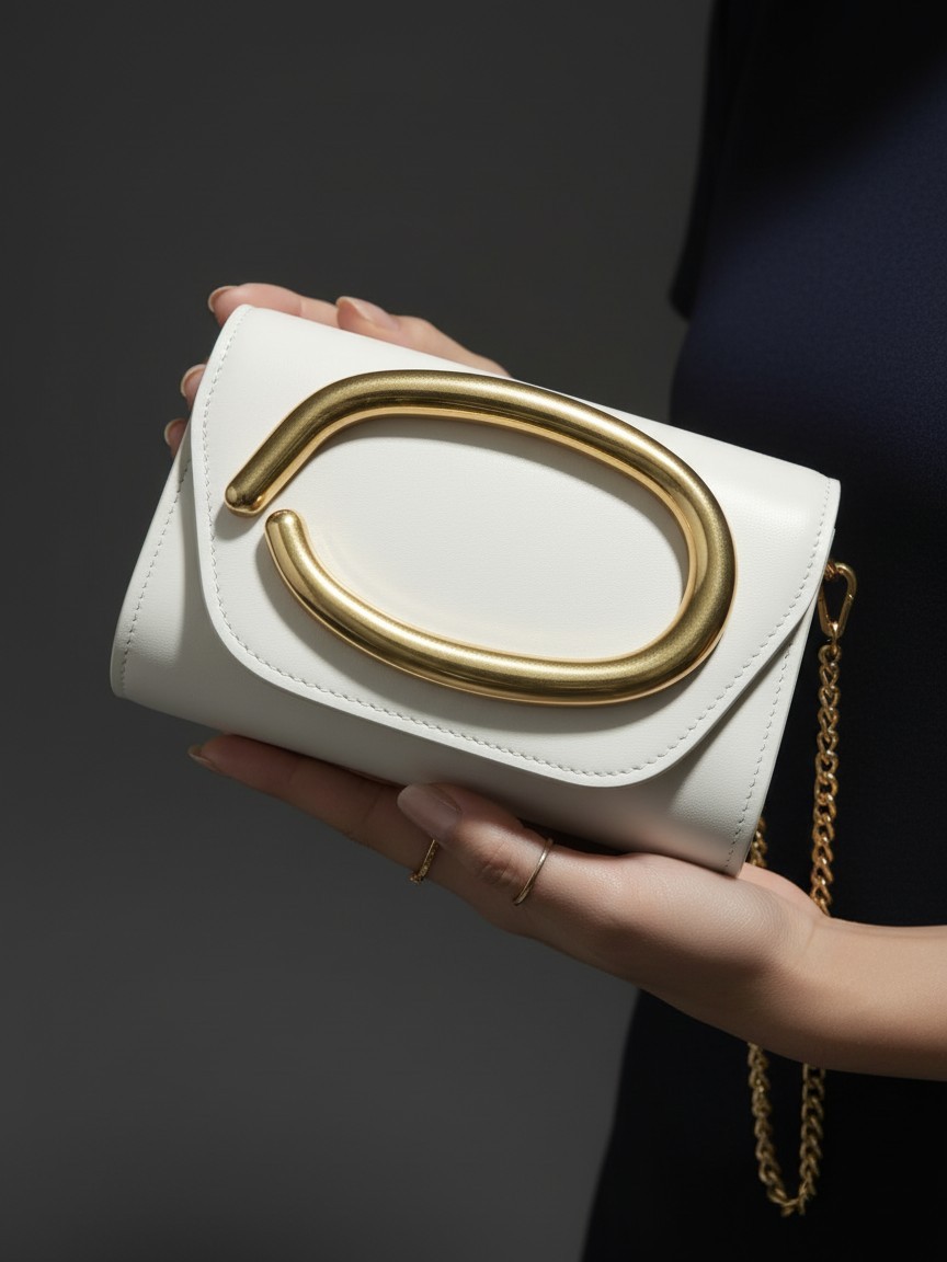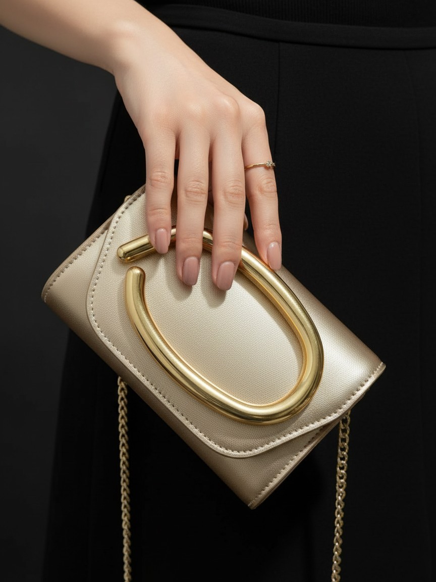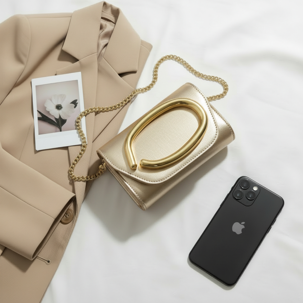 Bolsa Feminina Clutch Luxo Dourada com Alça Metal Elegante