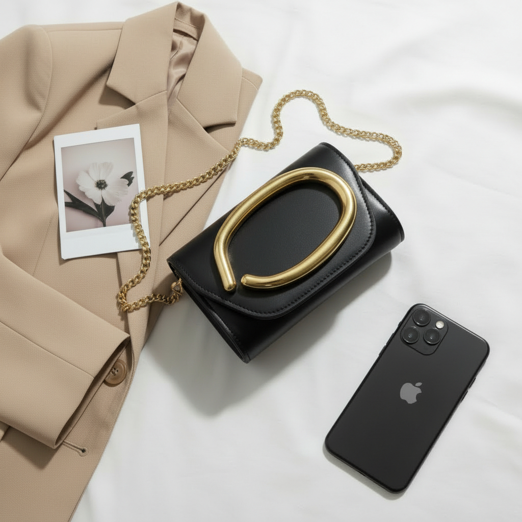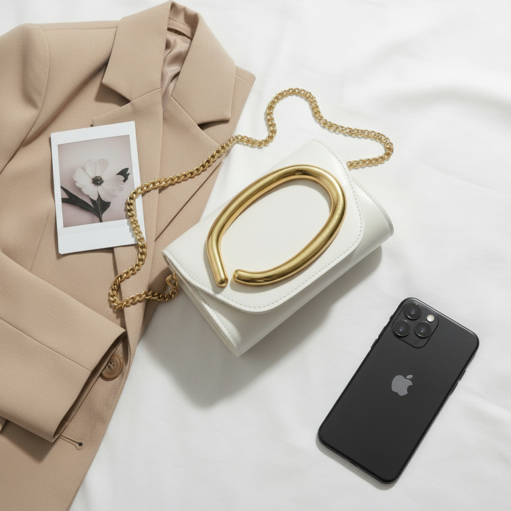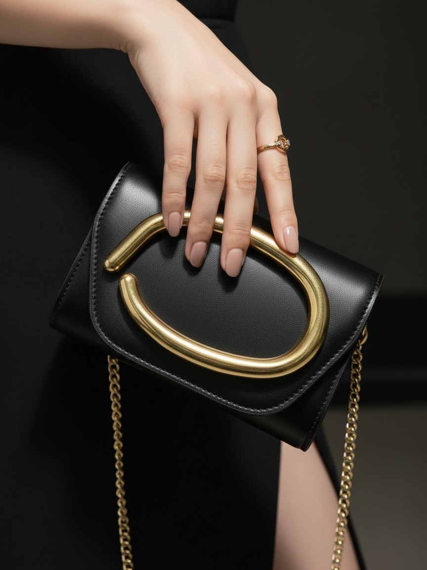 Bolsa Feminina Clutch Luxo Dourada com Alça Metal Elegante