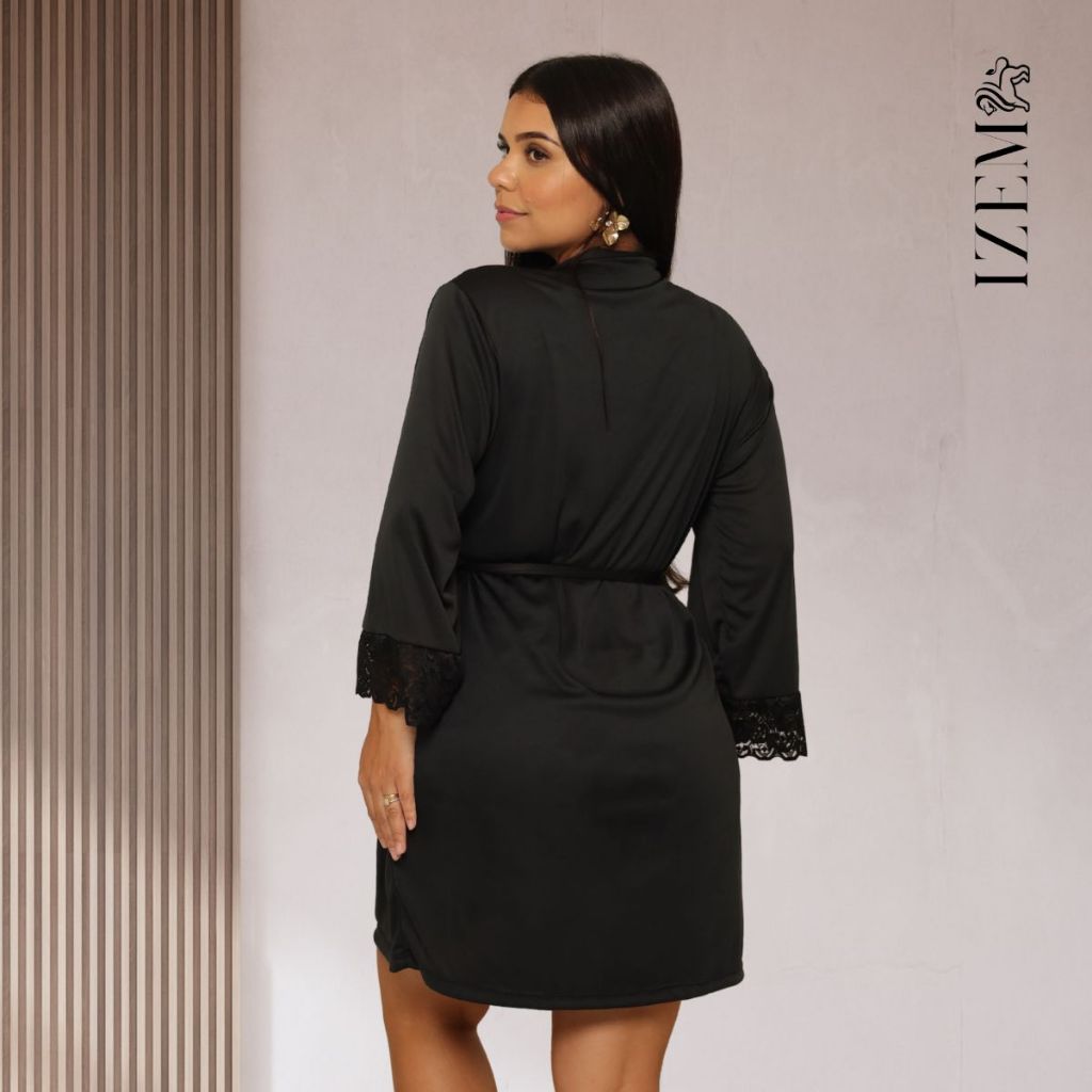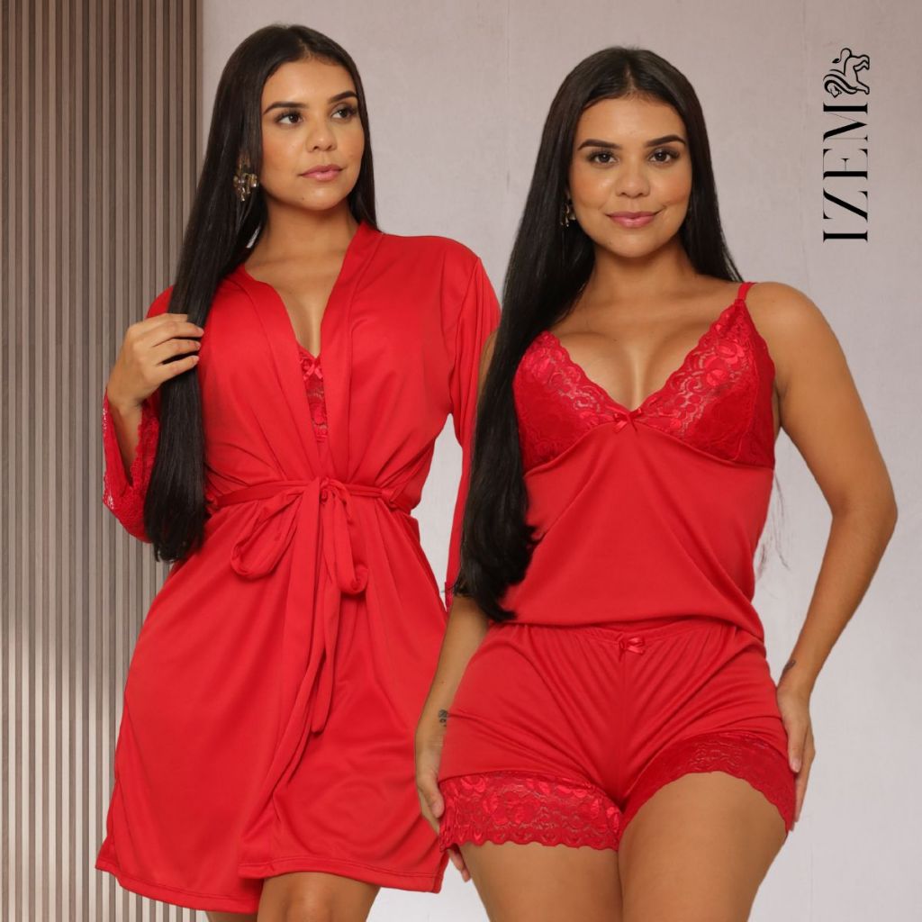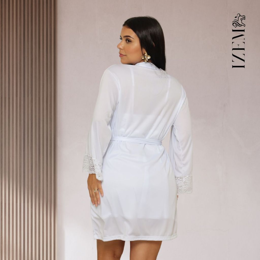 Kit Robe Feminino com Renda e Baby Doll Curto Sensual