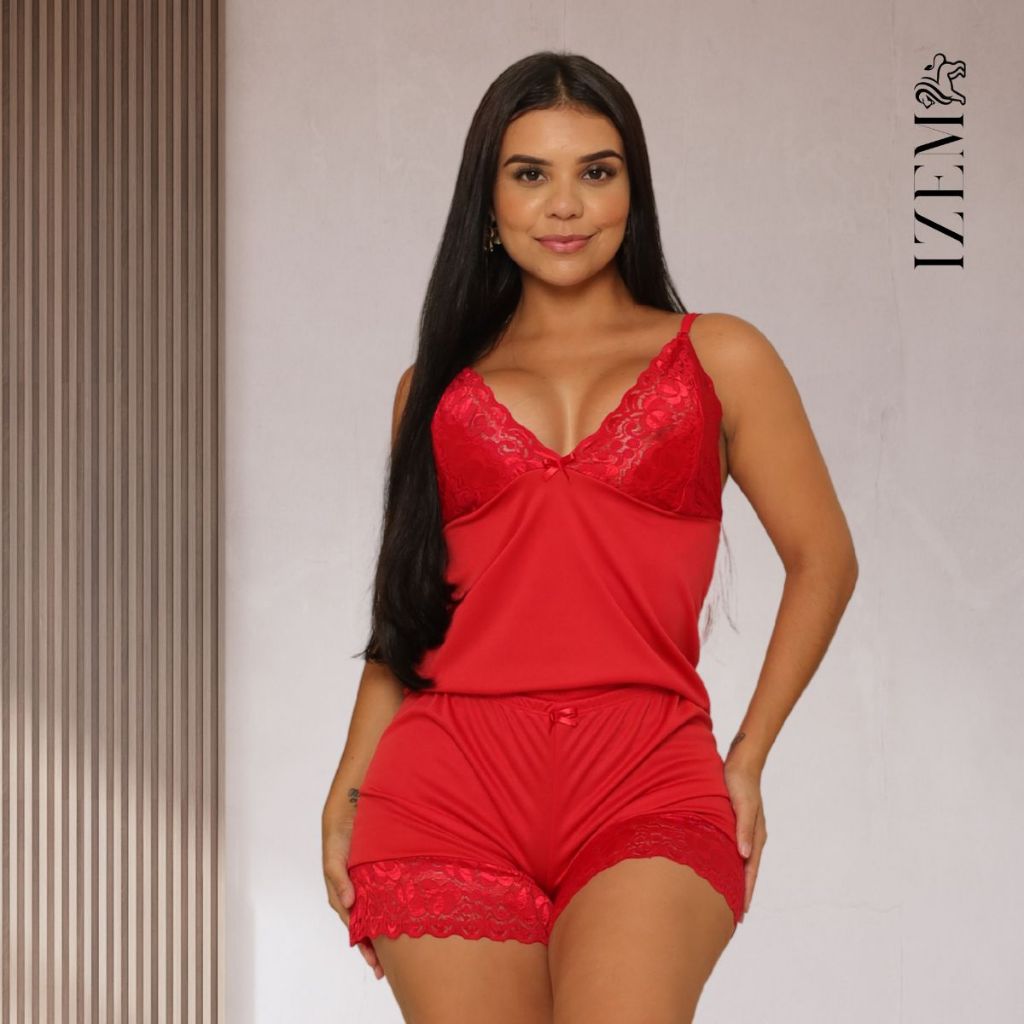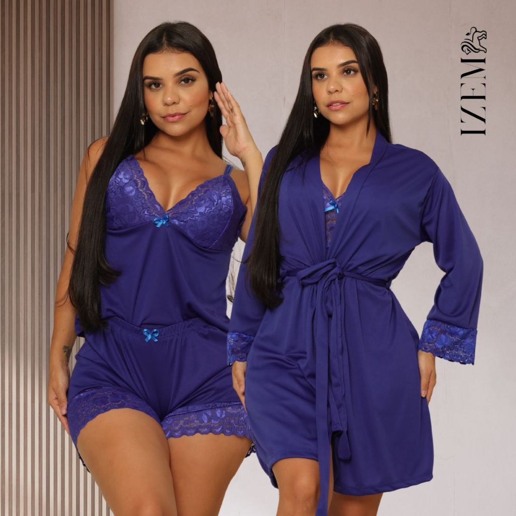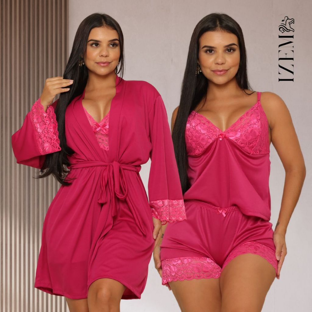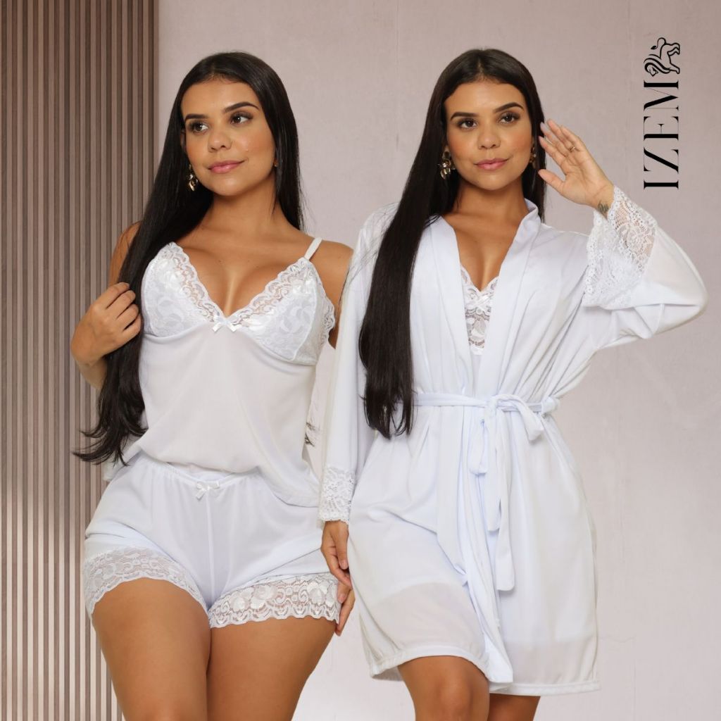 Kit Robe Feminino com Renda e Baby Doll Curto Sensual