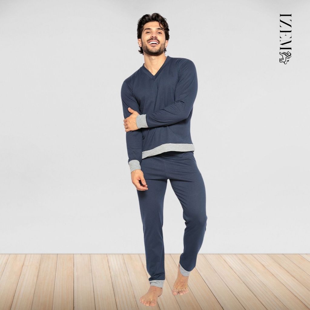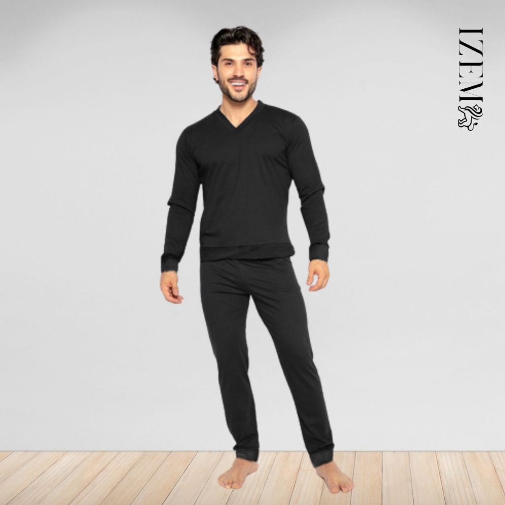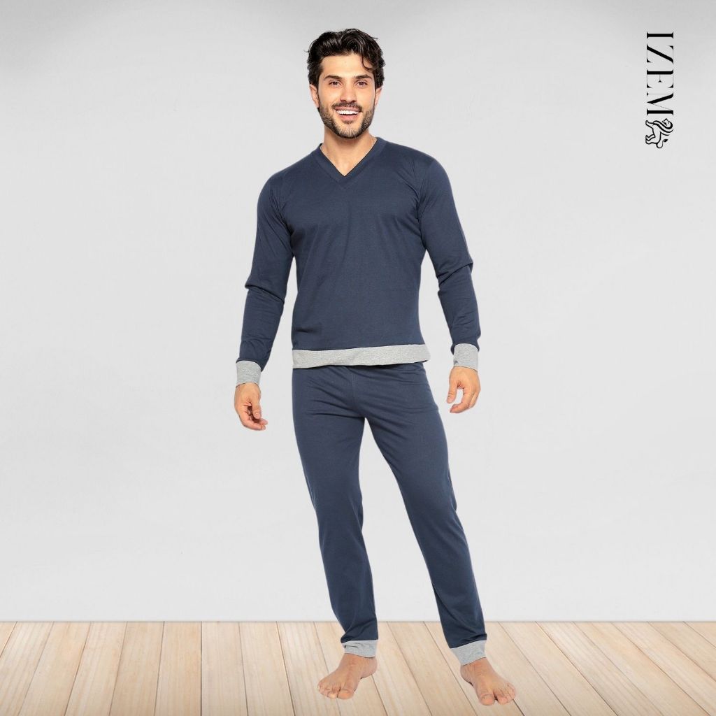 Pijama Masculino Algodão Manga Longa de Frio Inverno